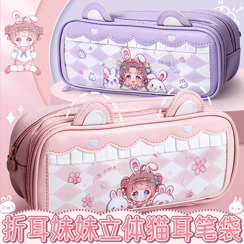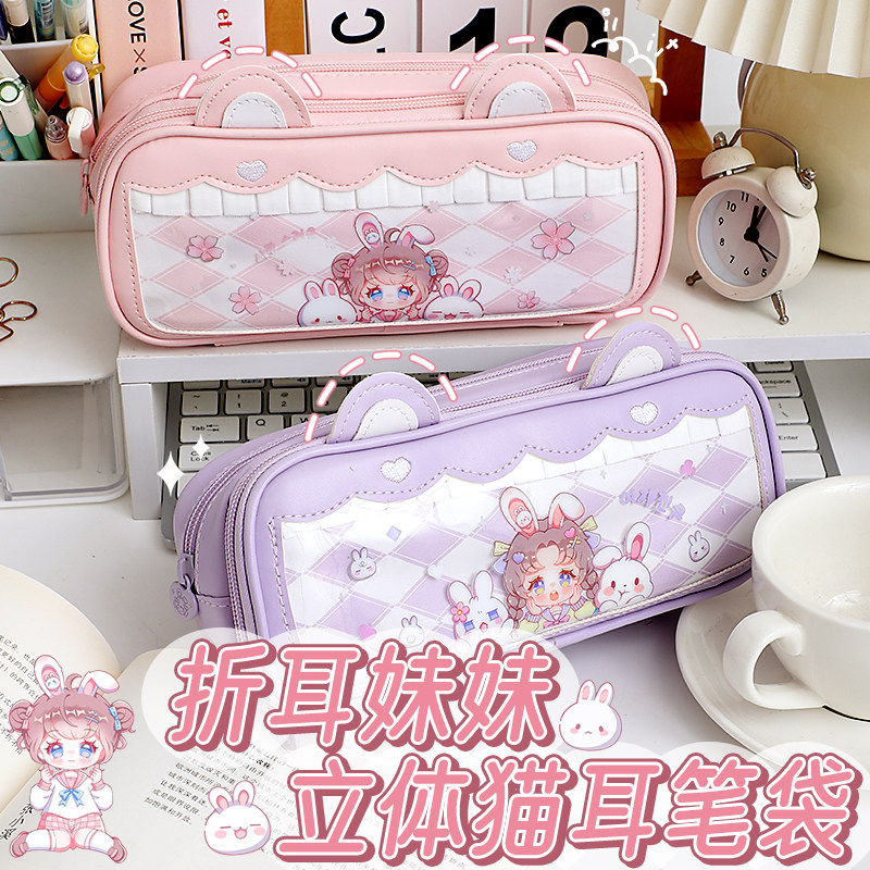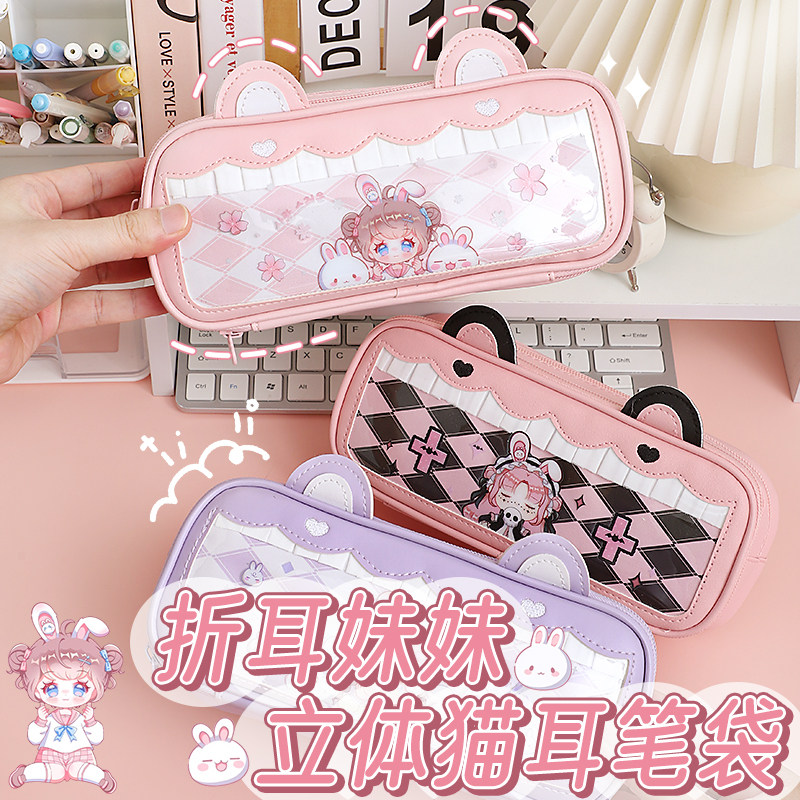 折耳妹妹笔袋创意立体猫耳笔袋初中女生小学生铅笔盒女孩可爱收纳