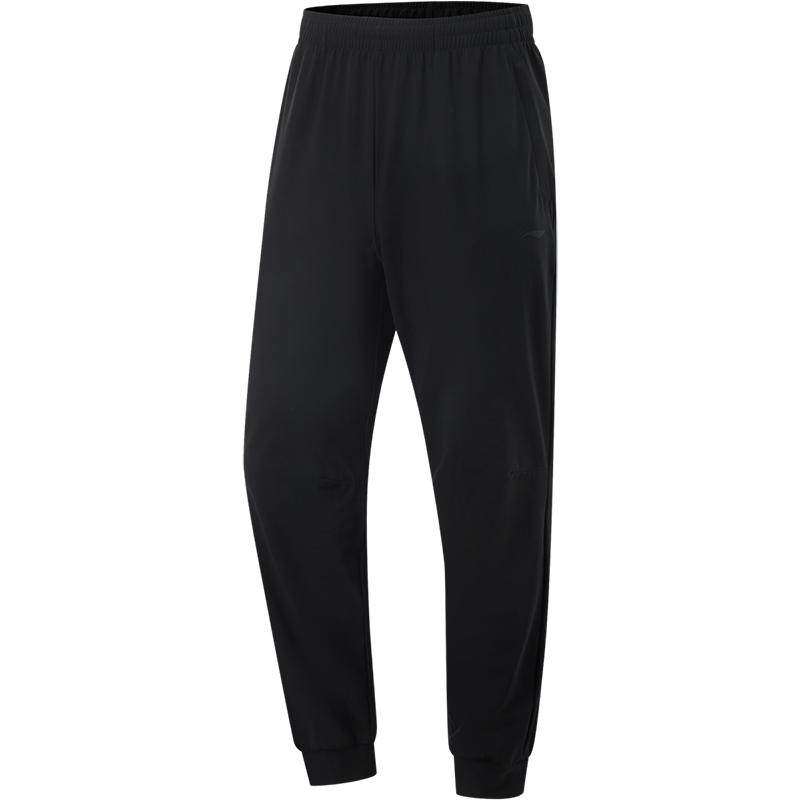 李宁卫裤官方男士跑步健身长裤黑色裤子男舒适束脚针织运动长裤