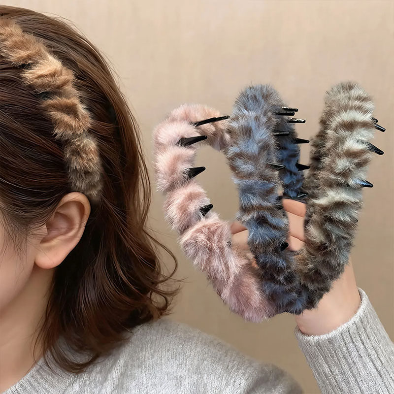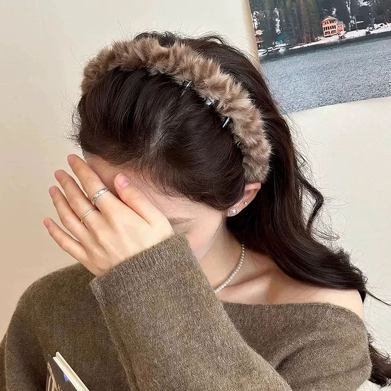 韩系毛绒条纹高颅顶发箍女2026冬季新款洗脸压发头箍气质发卡头饰