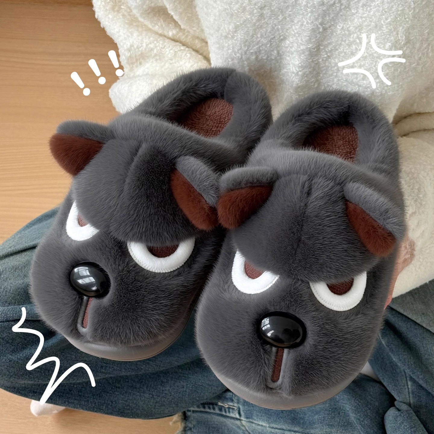 生气小狗棉拖鞋女包跟冬季情侣居家厚底防滑外穿保暖可爱毛绒棉鞋