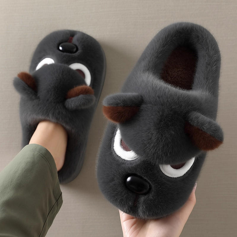 凶萌小狗棉拖鞋男士冬季2025新款室内家居毛绒包跟保暖棉鞋男外穿