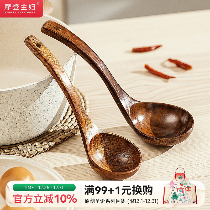摩登主妇汤勺家用长柄粥勺食品级木质饭勺日式嗦粉盛汤大号木勺子