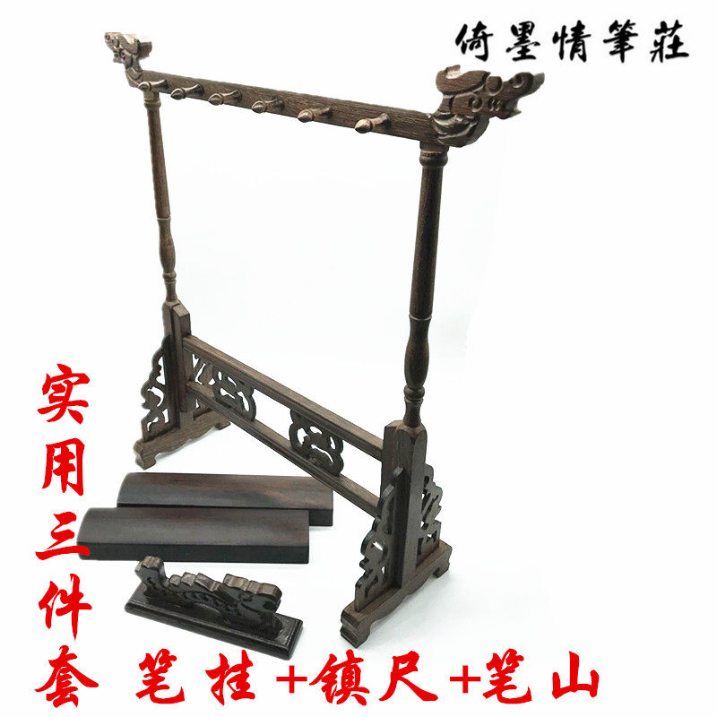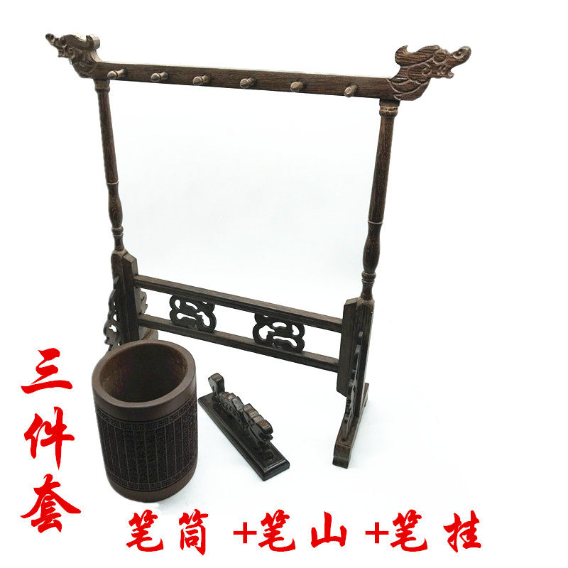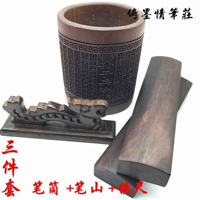 倚墨情黑梓木鸡翅木竹刻笔筒笔挂笔山镇纸尺三件套四件套笔搁笔洗