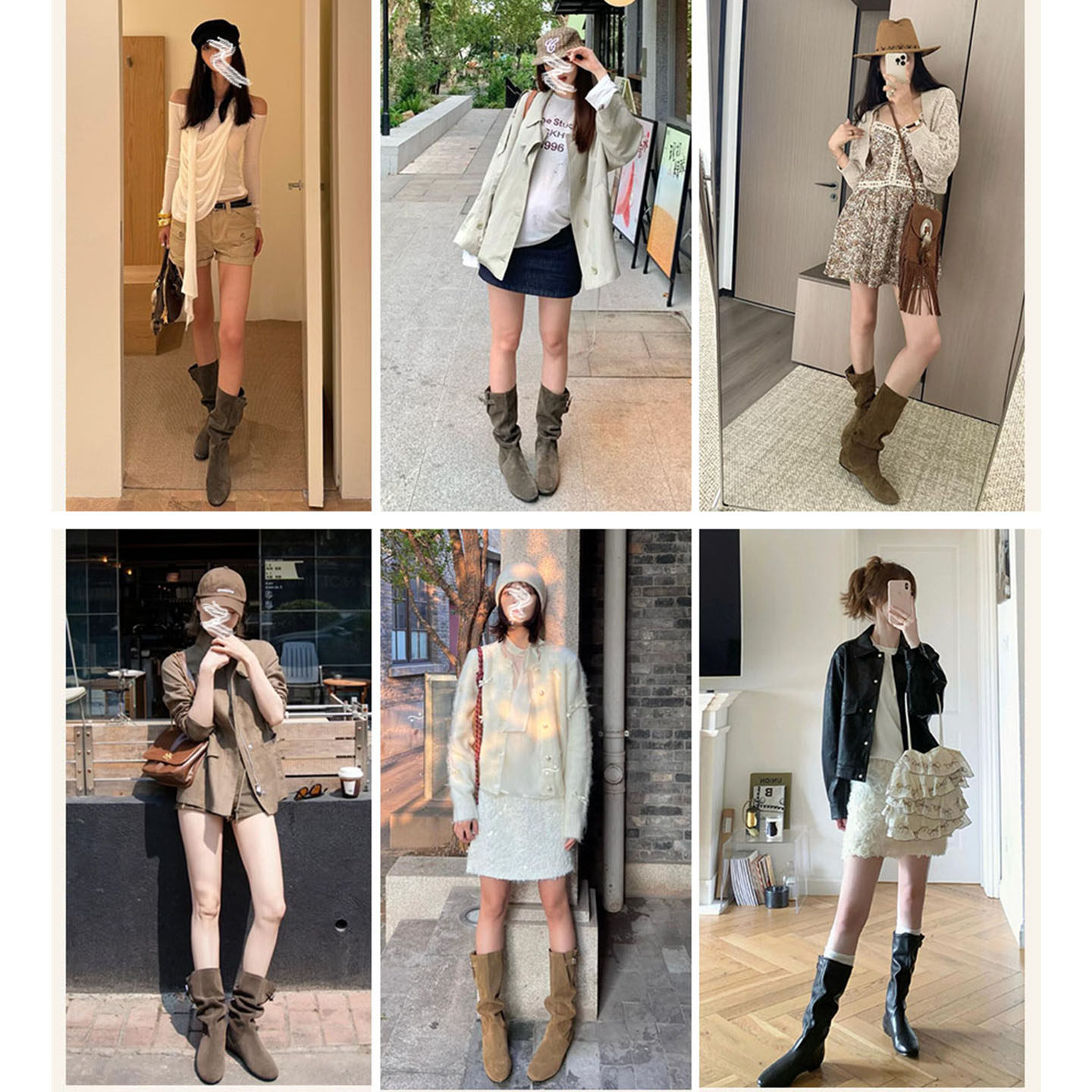 真皮~赵露思褶皱堆堆靴女尖头高跟西部牛仔短靴废土美拉德骑士靴