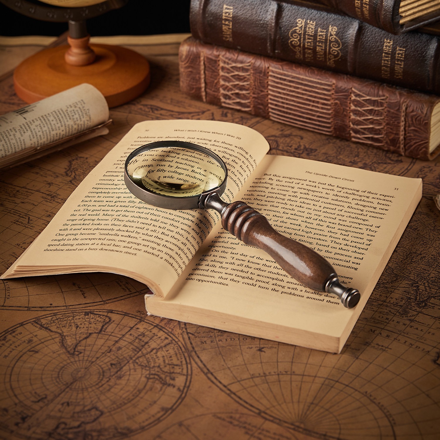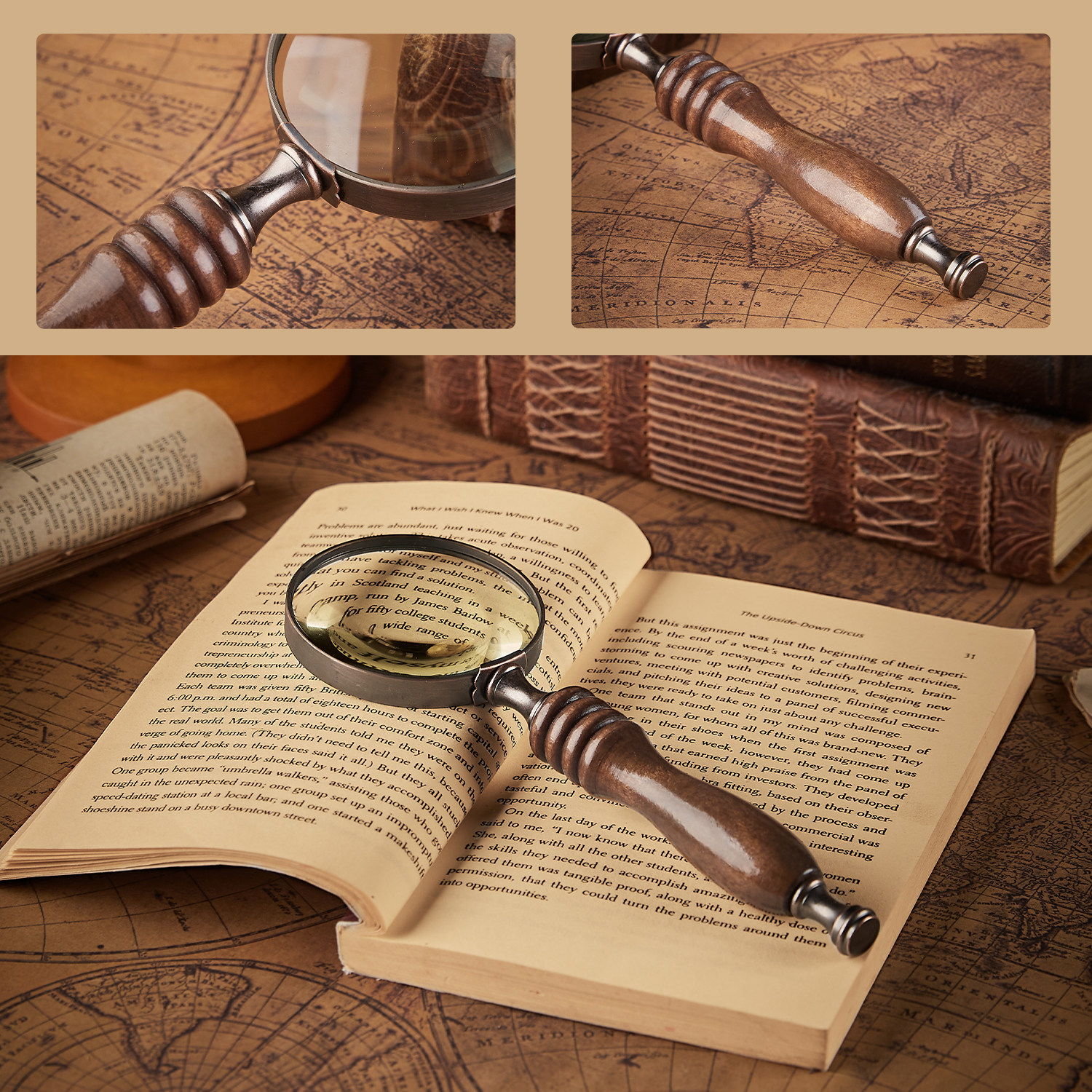 复古做旧手持实木手柄放大镜样板间软装摆件装饰饰品摄影拍照道具