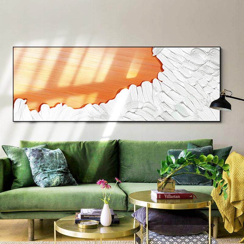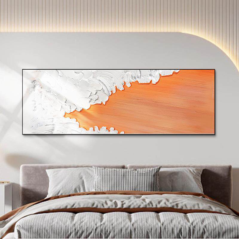 卧室床头肌理画装饰画现代简约橙色主卧挂画横版厚砂岩抽象壁画
