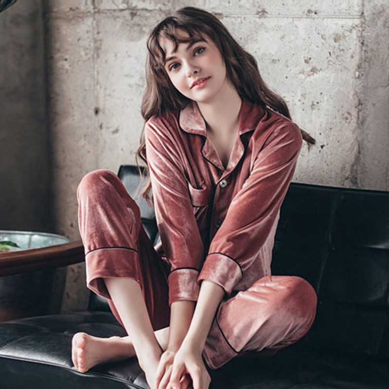 红豆金丝绒睡衣女秋冬长袖薄款大码胖MM200斤家居服春秋季可外穿