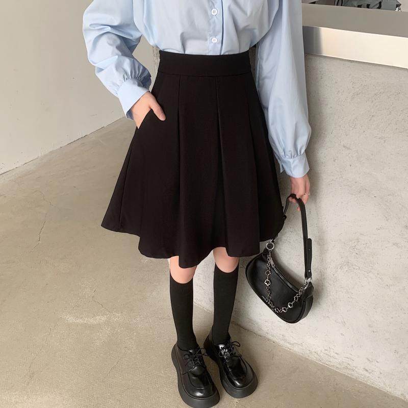 百褶裙女中长款夏大码高腰a字裙胖mm学院风伞裙防走光蓬蓬半身裙