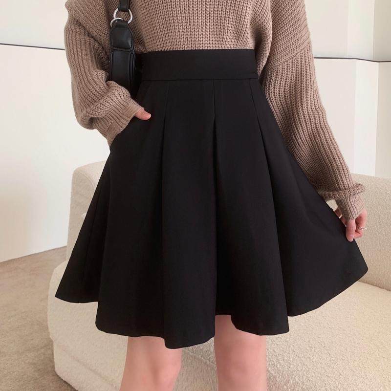 SIINSIIN直筒裙加绒2025年新款高腰收腹半身裙女黑色显瘦A字裙tk