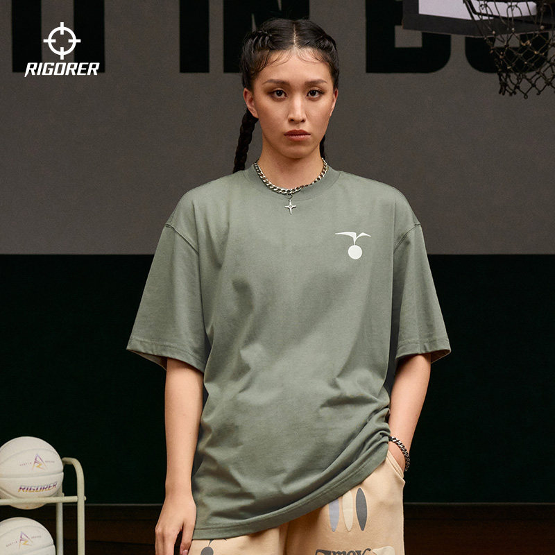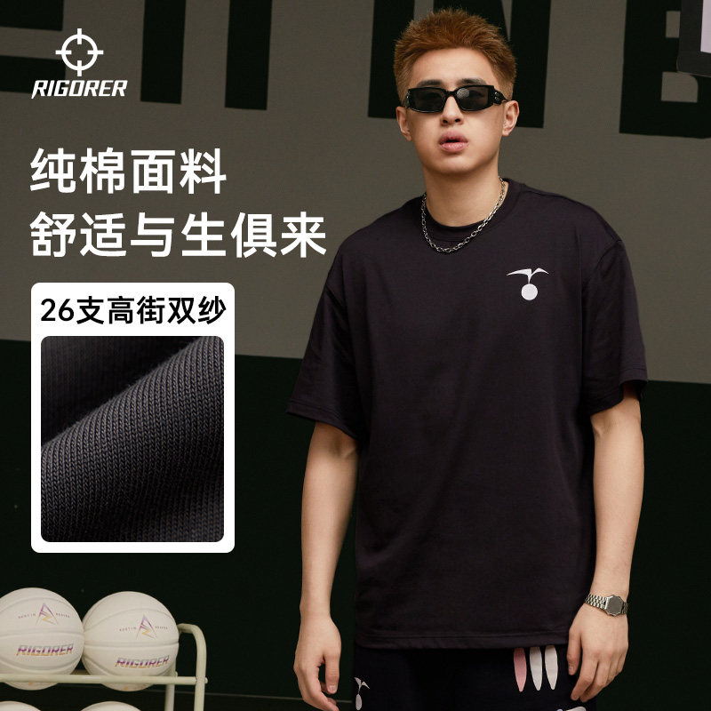 准者运动短袖男女夏季新款透气海洋印花情侣宽松简约纯色T恤上衣