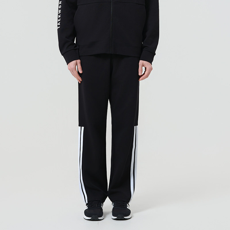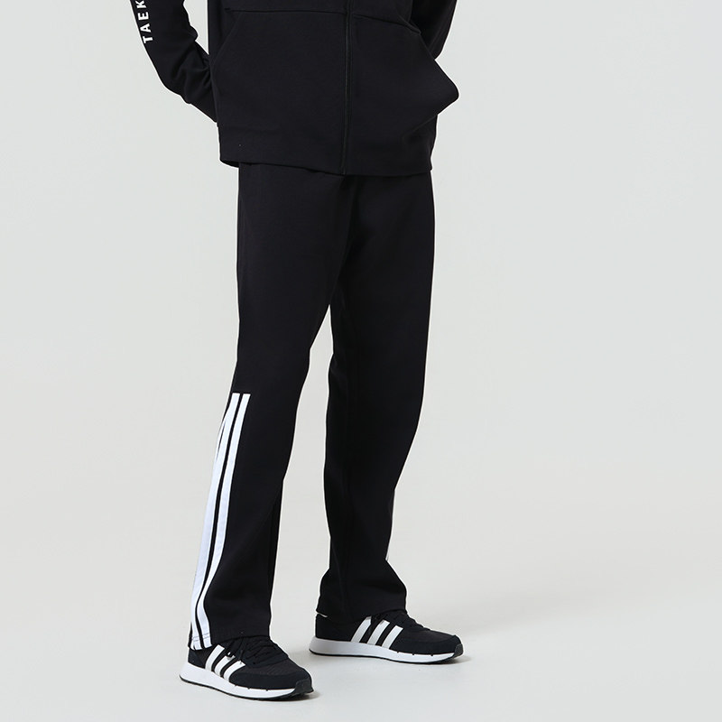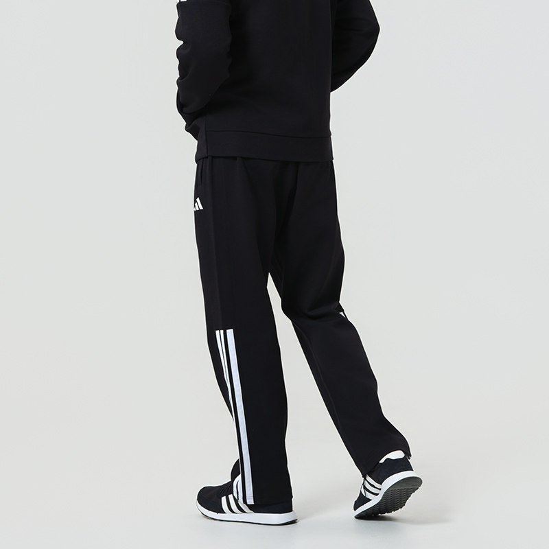 Adidas/阿迪达斯休闲运动风黑色直筒长裤男三条纹宽松棉质运动裤