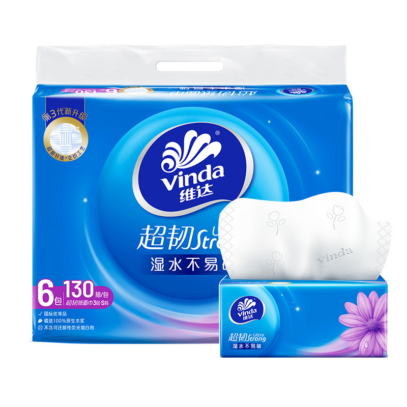 维达超韧抽纸3层130抽干湿两用家用卫生纸面巾纸餐巾纸整提装