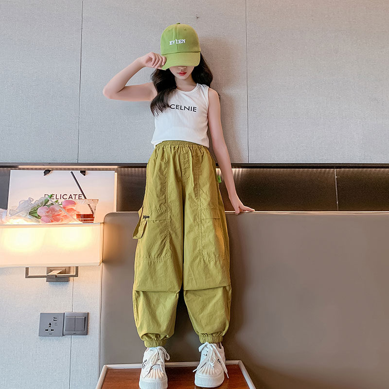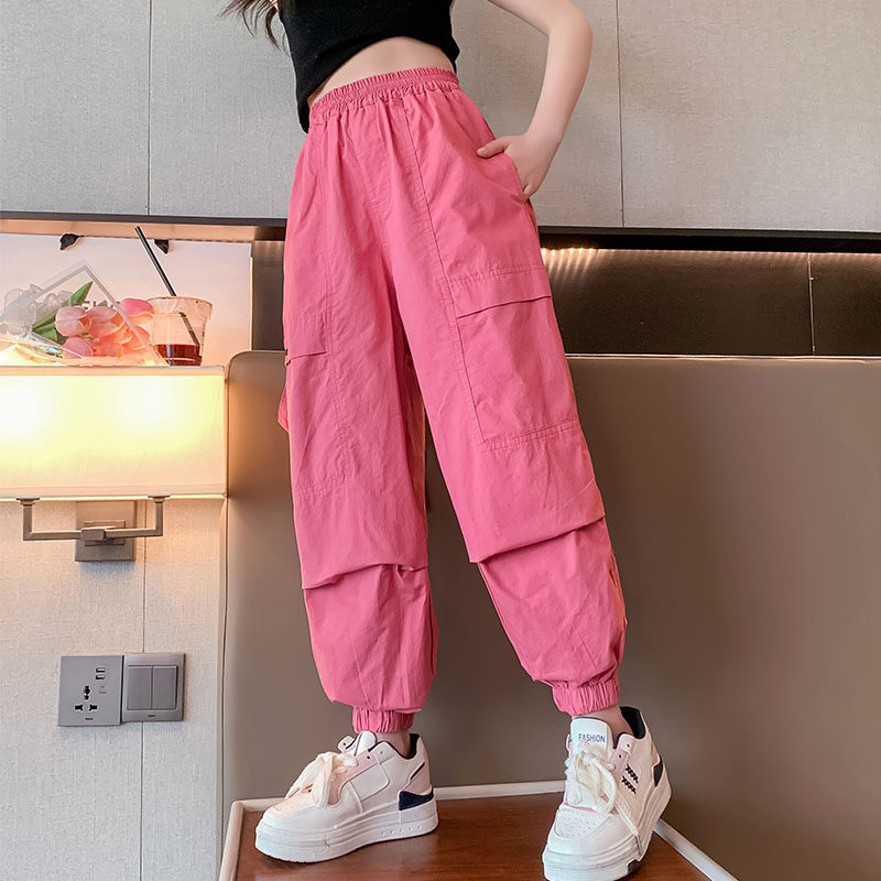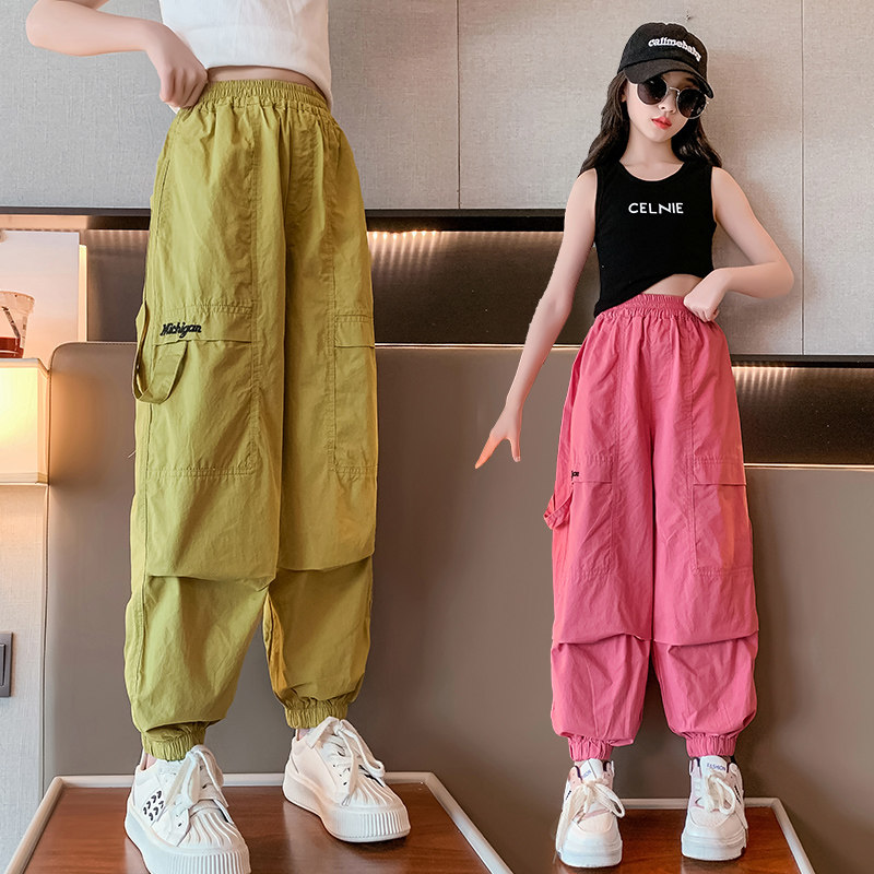 拉夏贝尔女童工装裤夏季儿童速干防蚊裤薄款大童夏装冰丝休闲长裤