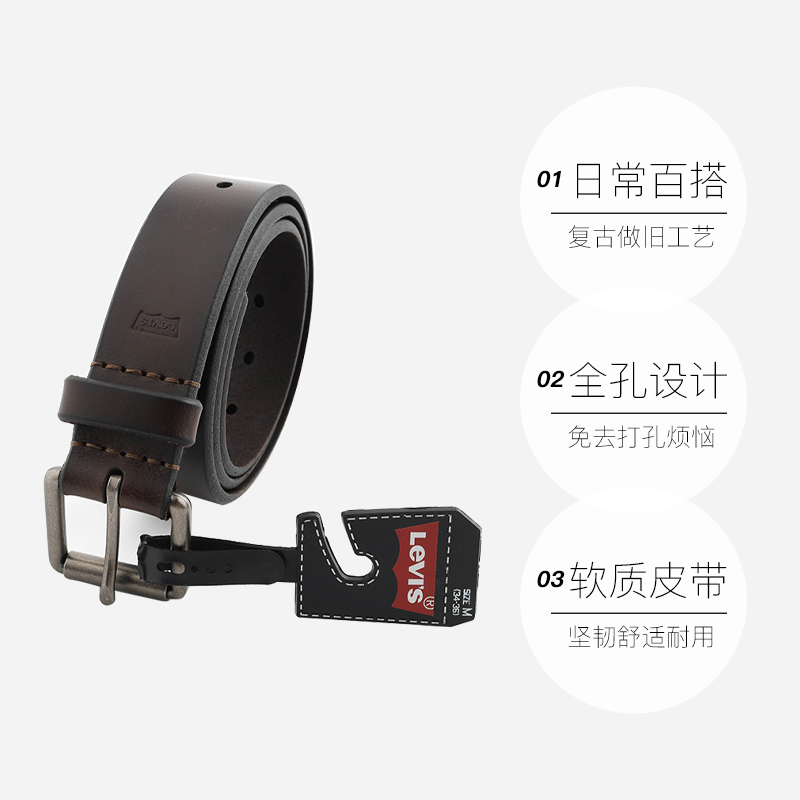 【自营】Levis李维斯皮带复古做旧皮带男休闲百搭针扣腰带潮礼盒