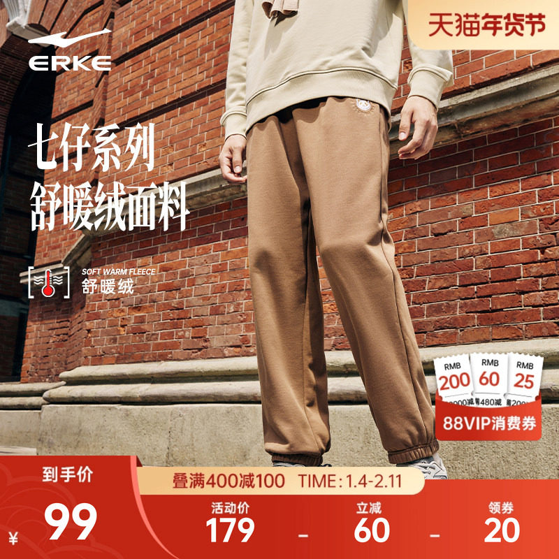 鸿星尔克加绒裤子男冬加厚男士宽松卫裤青少年运动裤休闲裤男裤