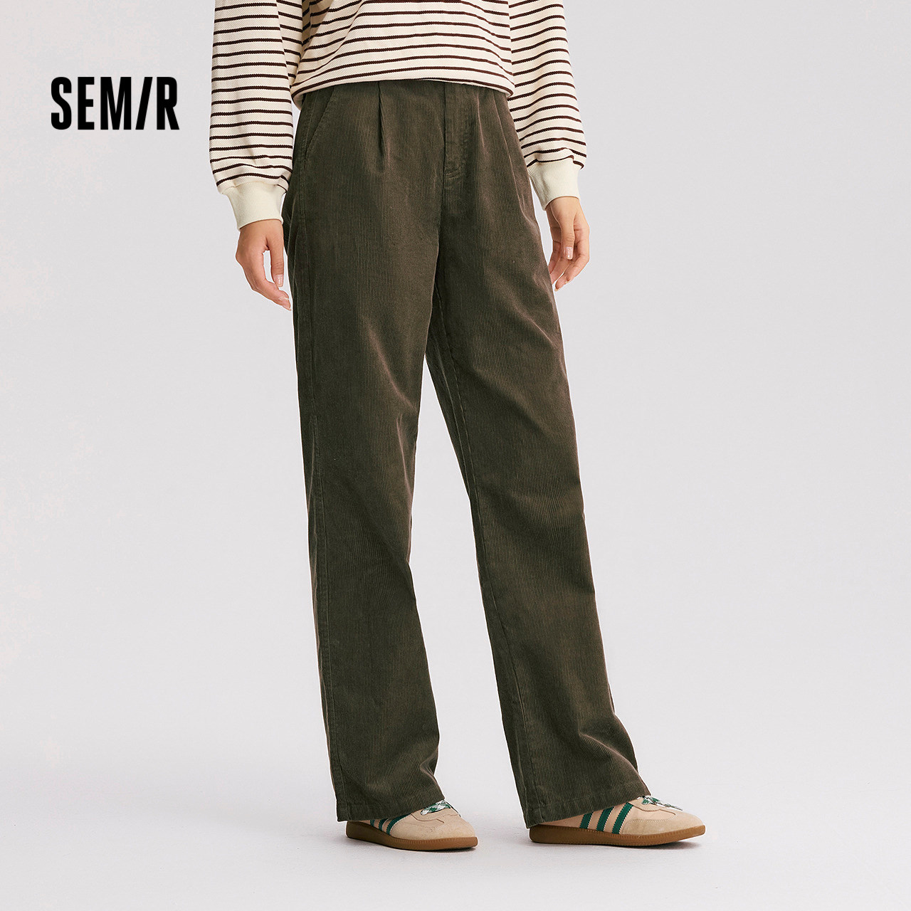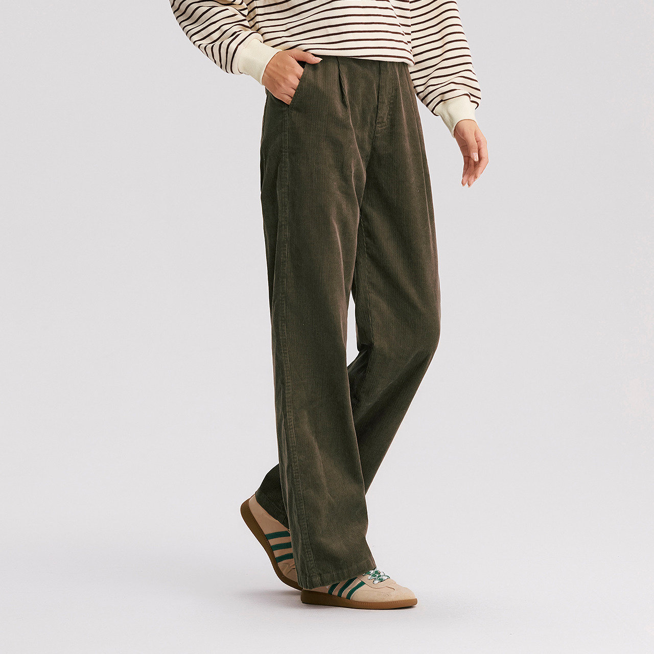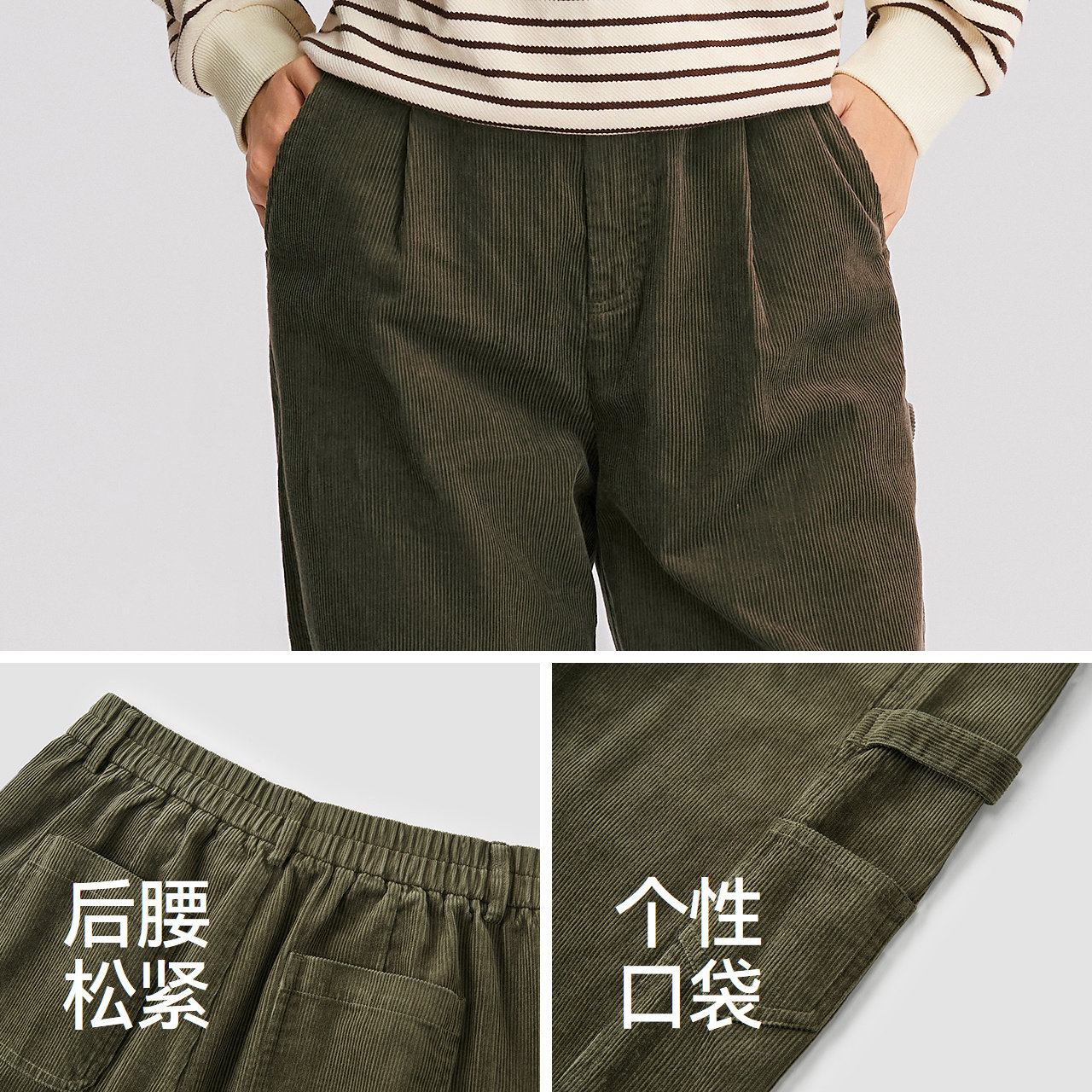 森马休闲裤女冬纯棉灯芯绒半松紧腰打褶宽松阔腿裤复古潮酷工装裤