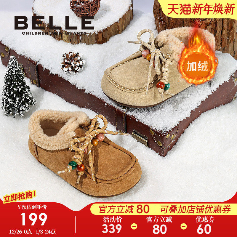 百丽童鞋女童加绒勃肯棉鞋冬季新款儿童保暖袋鼠鞋女孩毛毛鞋二棉