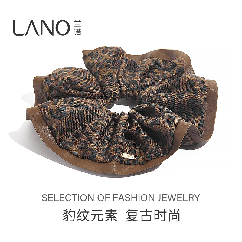 兰诺豹纹皮质大肠发圈女头绳高级感时尚洋气2025新款扎头发丸子头