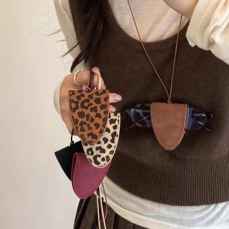 秋冬豹纹皮革挂脖多功能墨镜夹眼镜链收纳项链女款挂绳毛衣链配饰