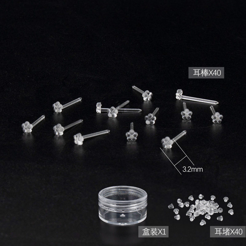 养耳洞耳钉套装透明隐形耳棒黑色耳棍透明耳针简约防过敏防堵耳饰