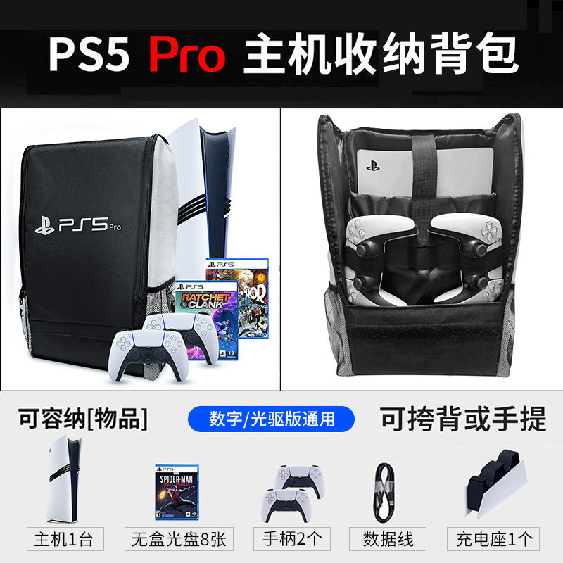适用PS5pro收纳包便携出行手柄收纳双肩背包旅行包游戏防尘主机包