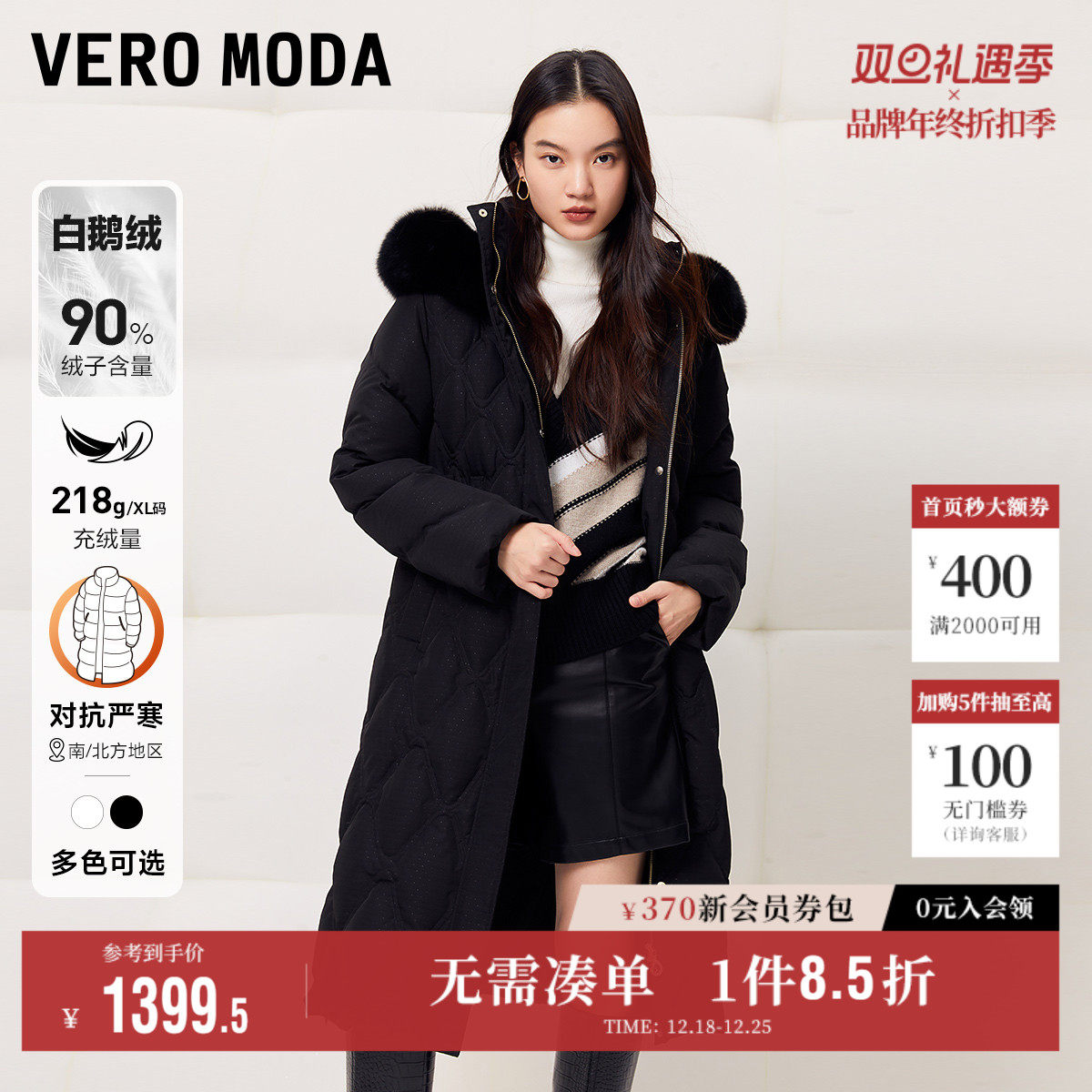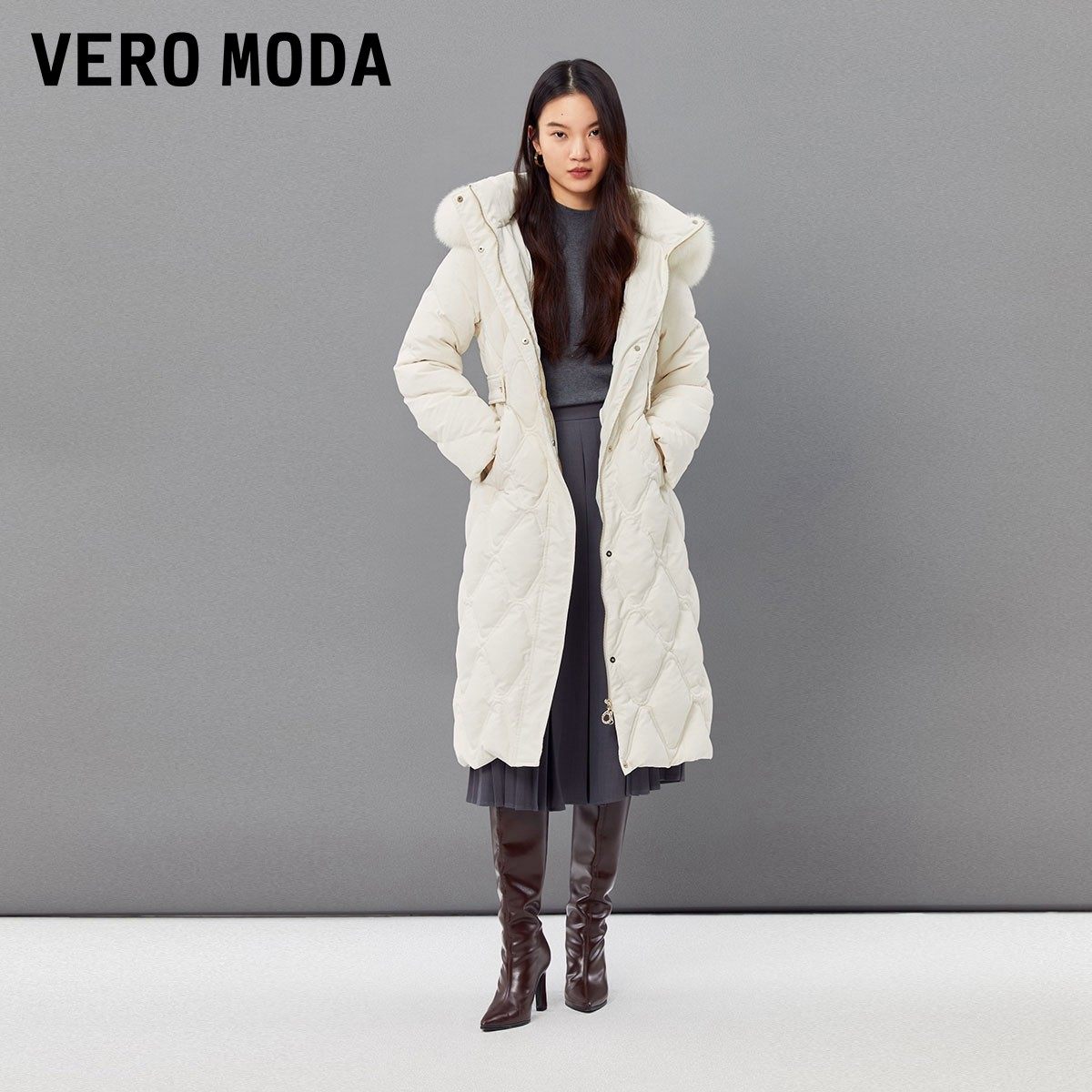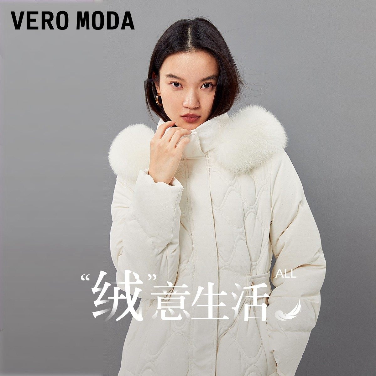 Vero Moda奥莱羽绒服女冬季新90白鹅绒狐狸毛领加厚保暖收腰长款