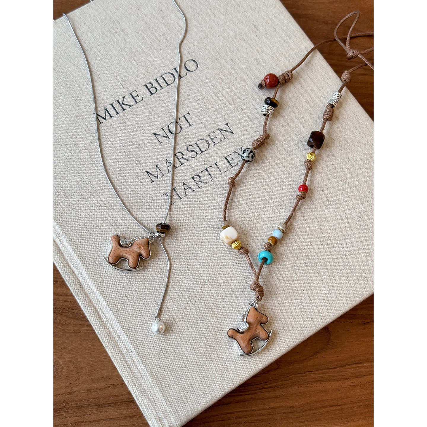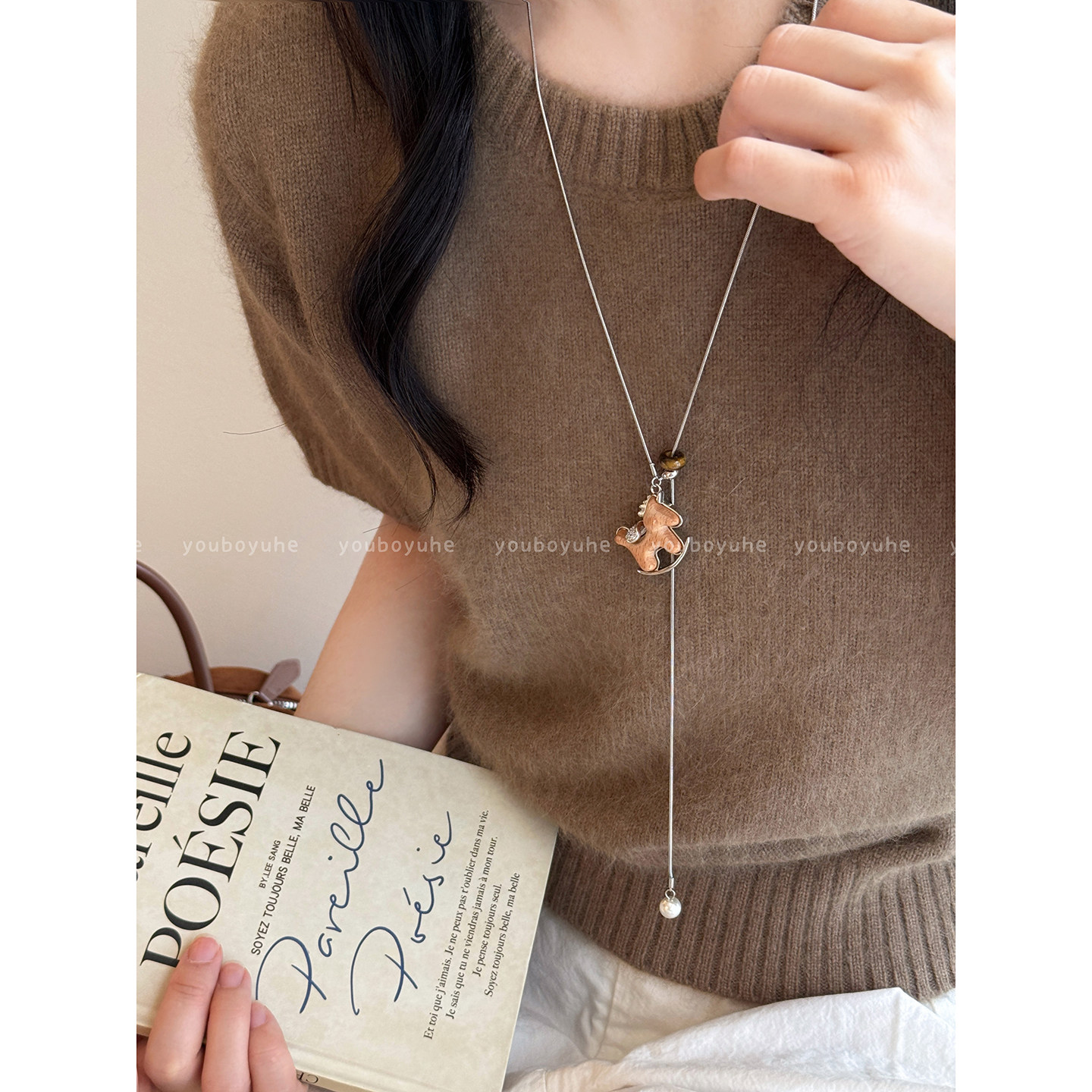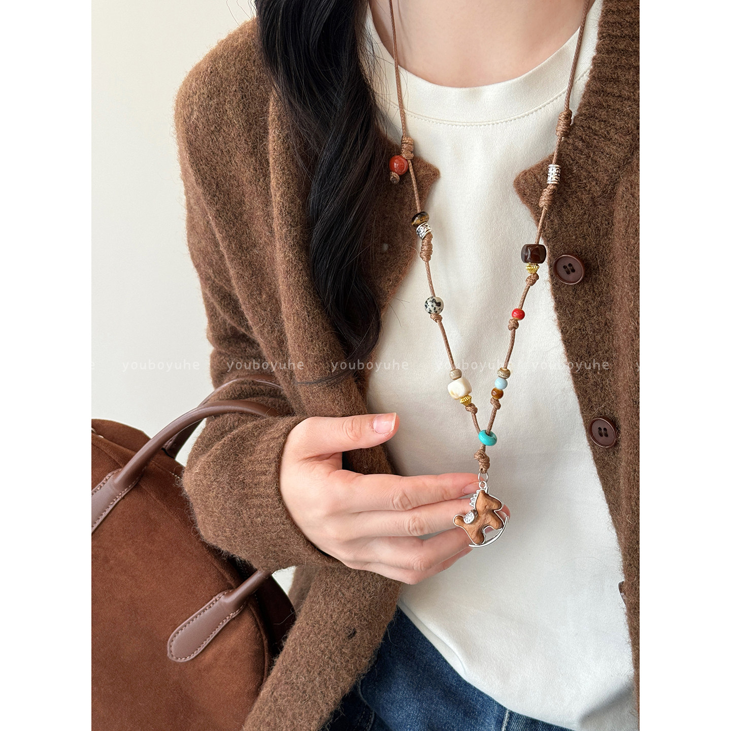 新中式复古小马串珠编织绳项链女秋冬独特设计长款毛衣链时尚配饰