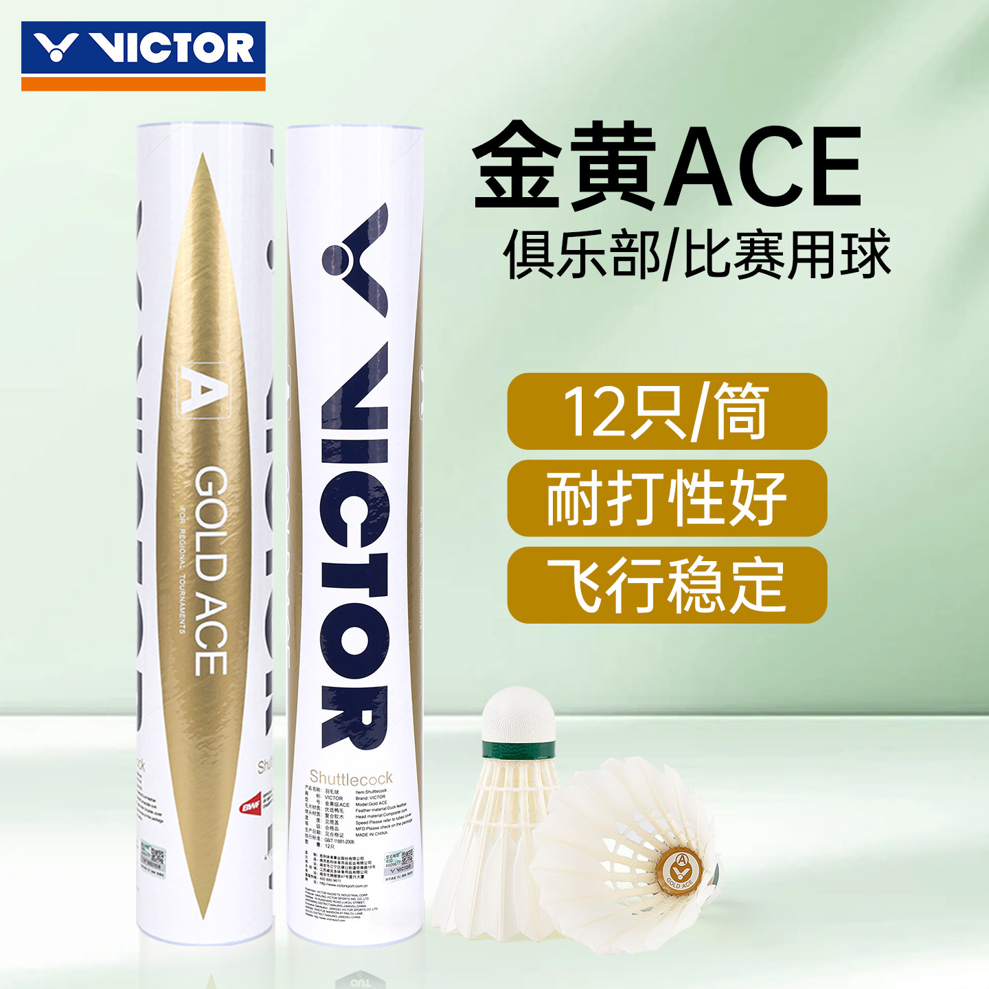 VICTOR胜利羽毛球金黄3号耐打防风训练金黄1号球12只装金黄ACE