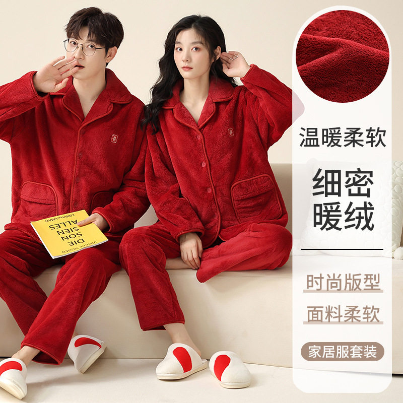 情侣睡衣秋冬款珊瑚绒冬季女士可外穿加厚加绒男士保暖家居服套装