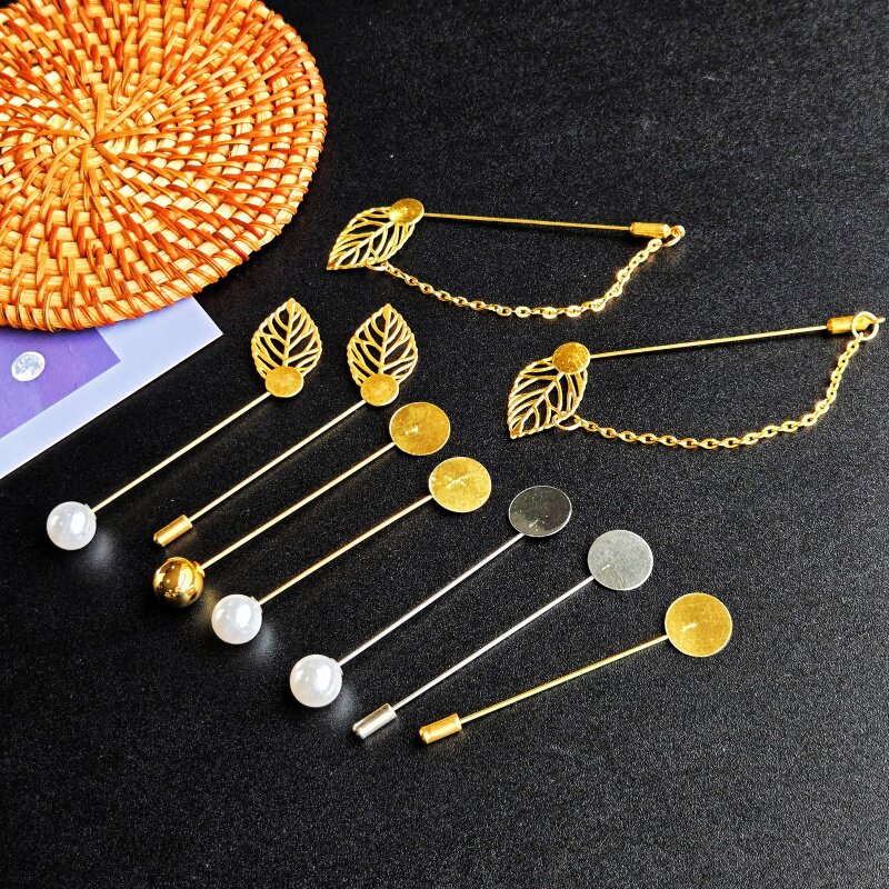 diy手工胸针材料一字插针胸针胸花配件珍珠胸针平拖胸针扣材料