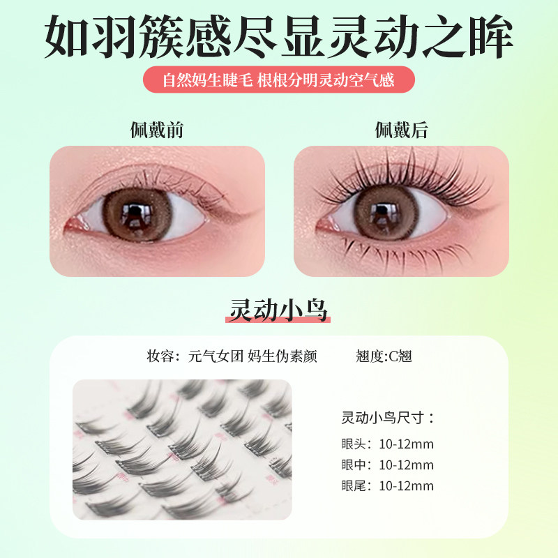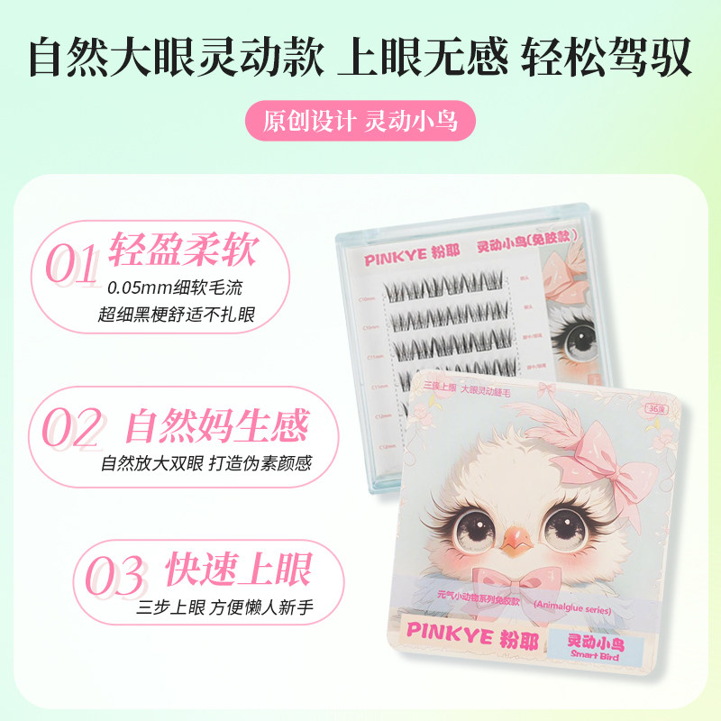 粉耶动物假睫毛新手仿真鸟系自然大眼灵动仿真单簇女团新手免胶