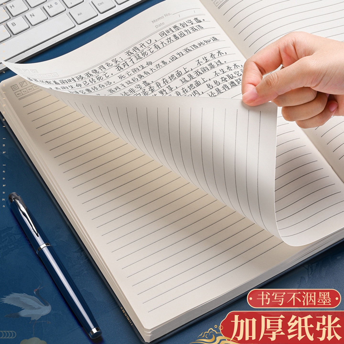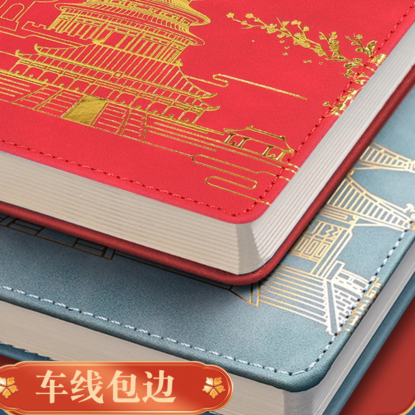 A4大本超厚笔记本中国国潮本加厚商务套装记事本国风烫金本子记事本日记本横线本子A4尺寸笔记本记事本