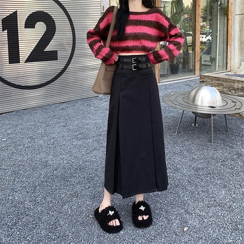 SIINSIIN直筒裙加绒2025年新款高腰收腹半身裙女黑色显瘦A字裙tk