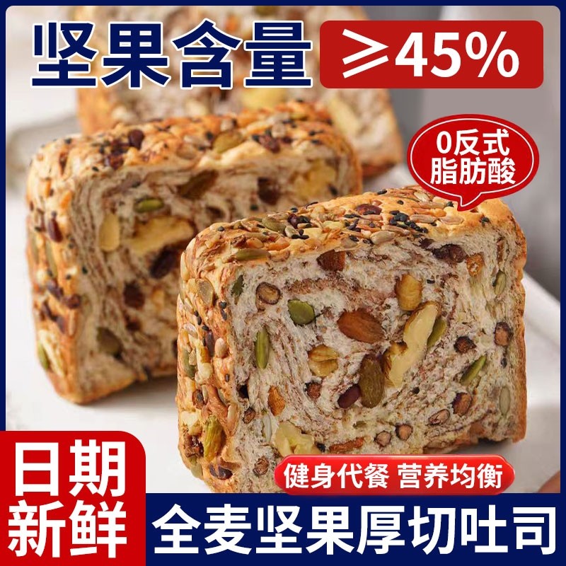 全麦坚果厚切吐司面包饱腹代餐自律速食零食整箱早餐手撕无蔗糖
