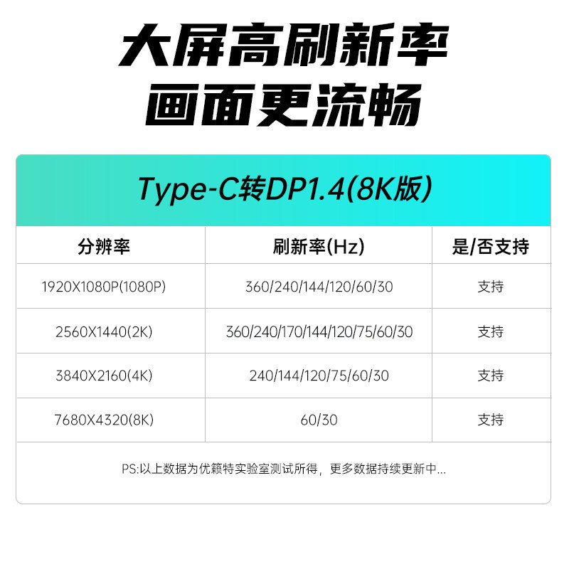 typec转dp1.4转接线8K互转4K240/2K240/360Hz外接显示器高清适用华硕天选笔记本电脑手机iPad平板雷电3/4接口