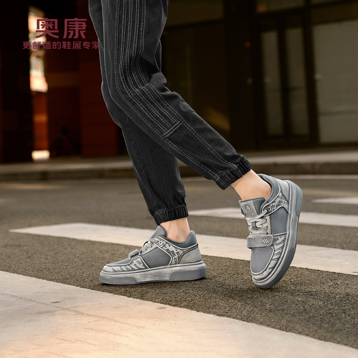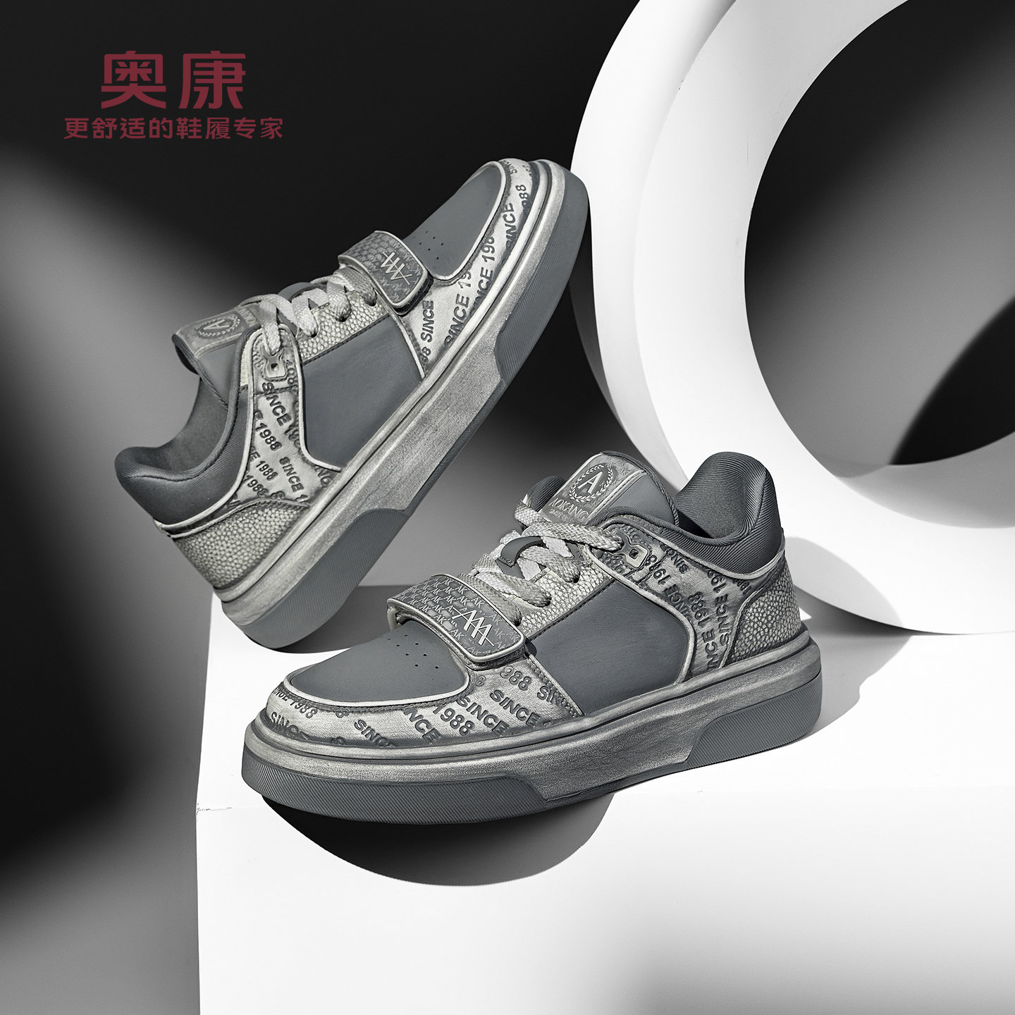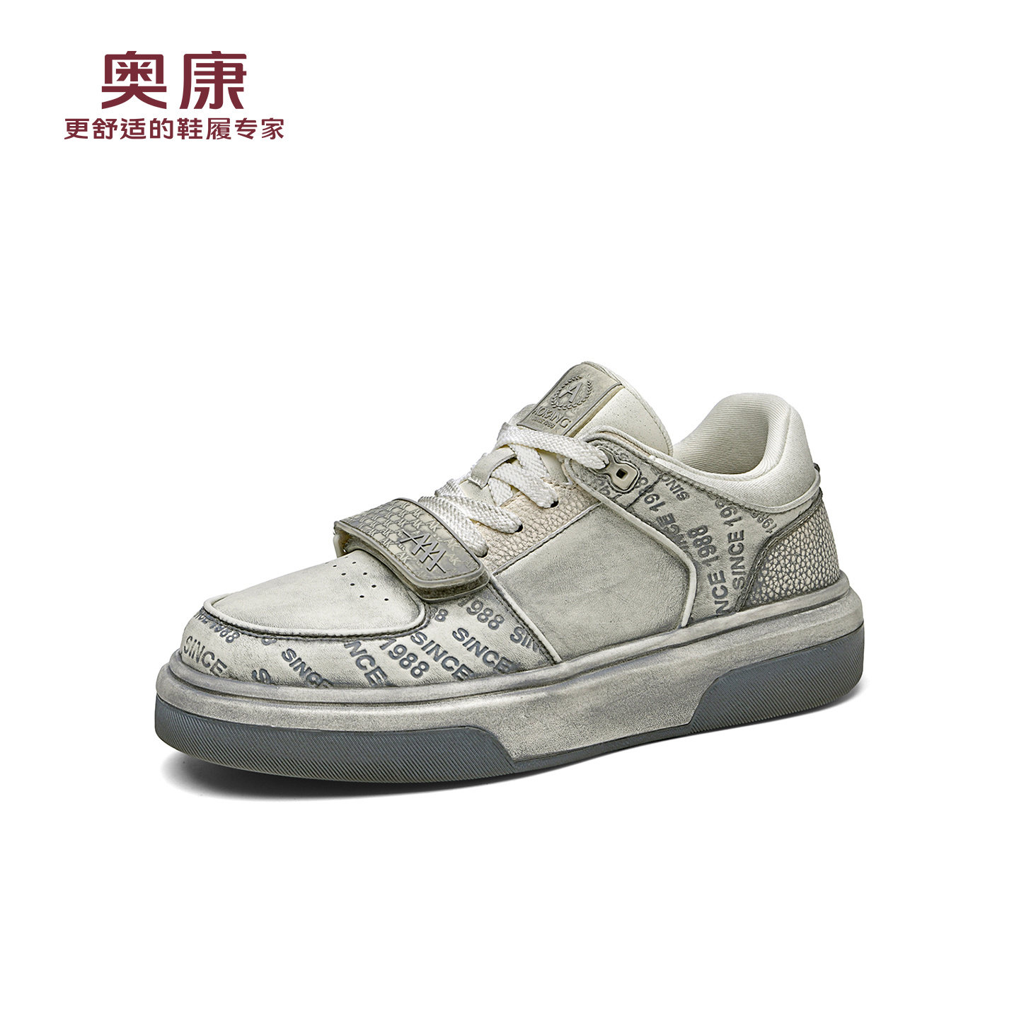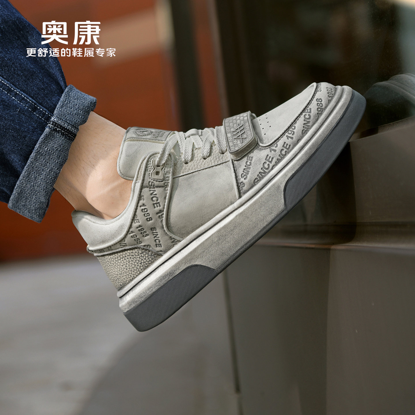 奥康 男鞋2025秋冬新款休闲板鞋男生做旧擦脏滑板鞋水泥灰小白鞋W