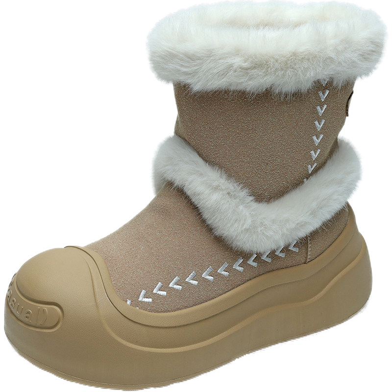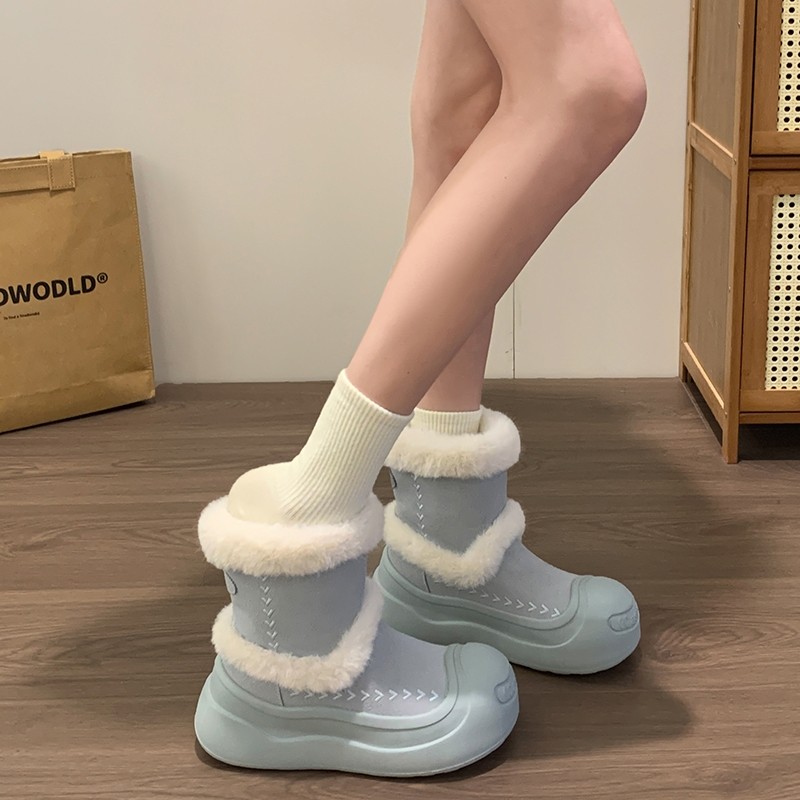 15HZ的鲸厚底雪地靴女2025新款防滑棉鞋女一脚蹬冬季雪地棉女鞋子