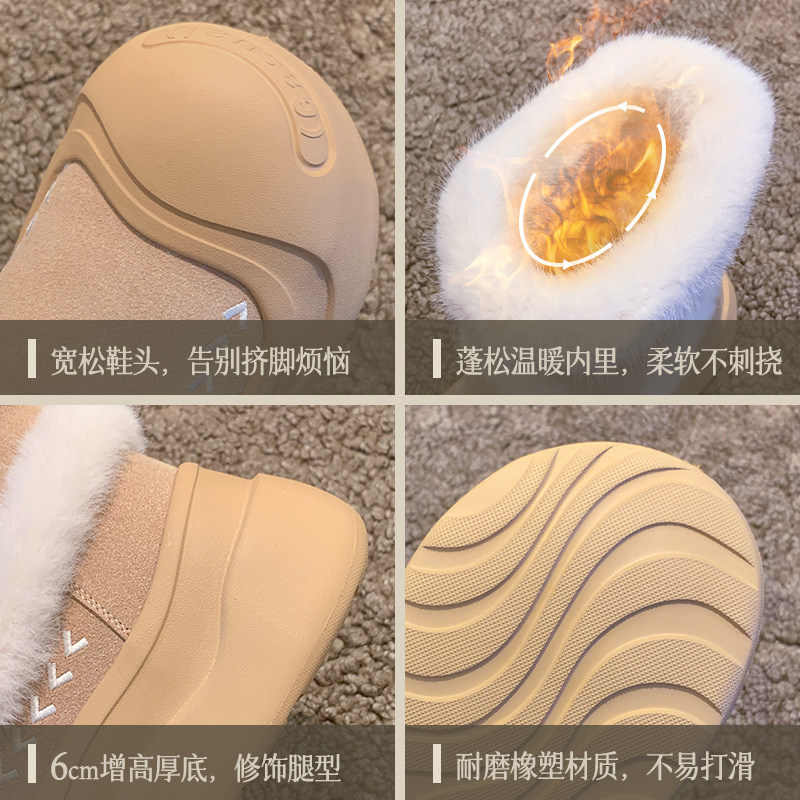 低帮厚底雪地靴女2025新款冬季懒人一脚蹬毛毛棉鞋加绒加厚女鞋子