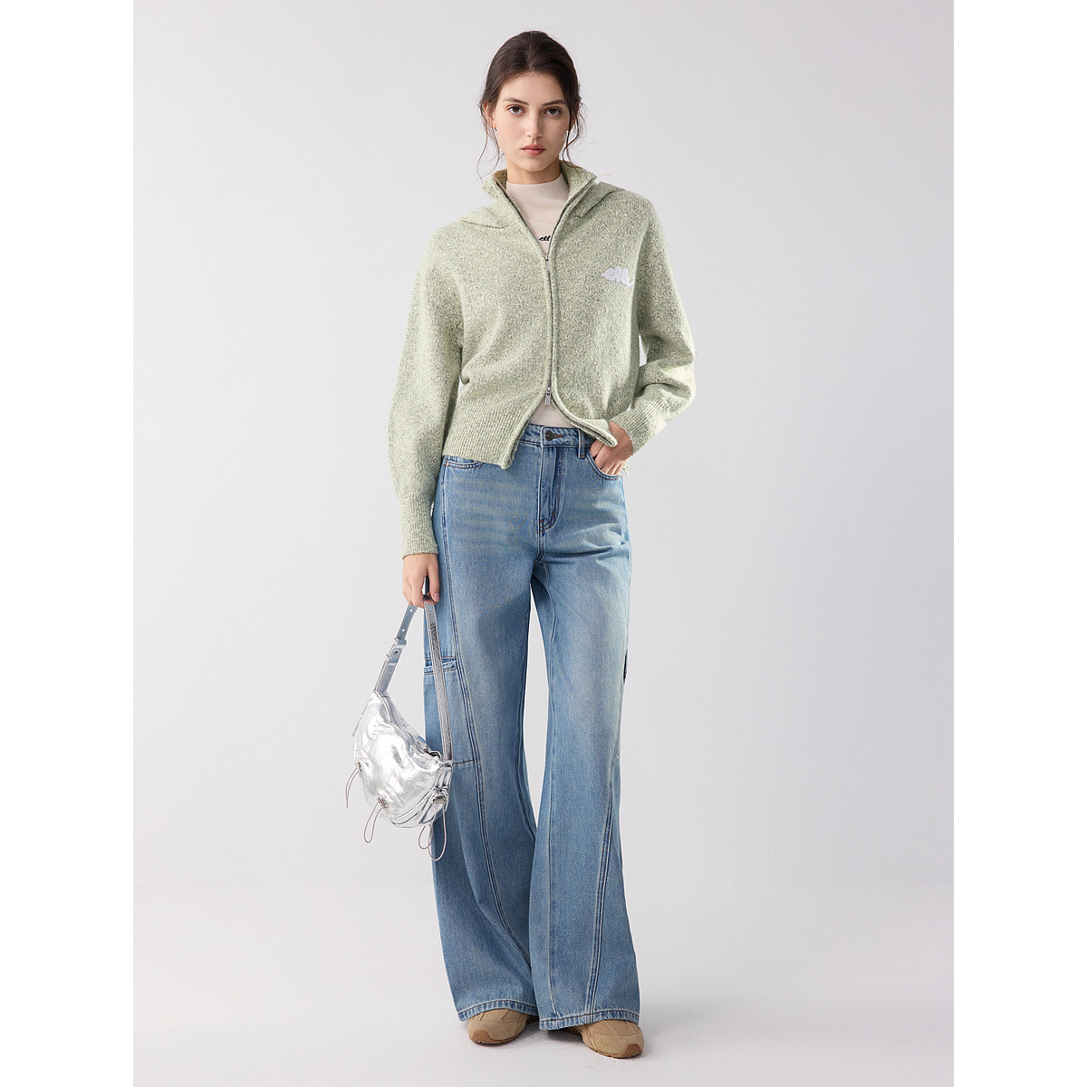 森柔牛仔|商场同款森马牛仔裤女翻边长裤2025秋季新款宽松阔腿裤