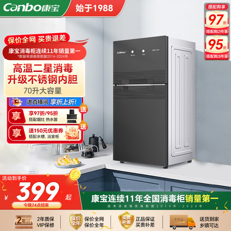 康宝70-LA1B消毒柜家用小型立式碗柜厨房餐具碗筷收纳烘干一体
