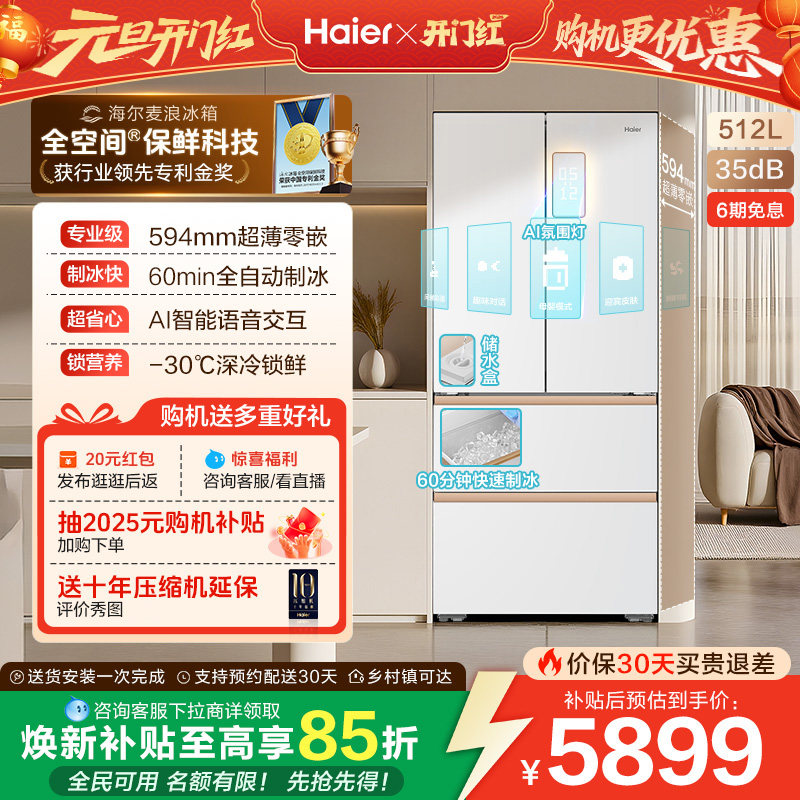 海尔麦浪512Ultra制冰法式双开四门超薄零嵌入式家用风冷无霜冰箱