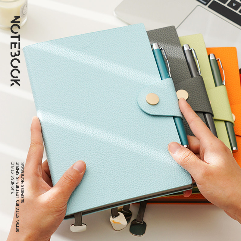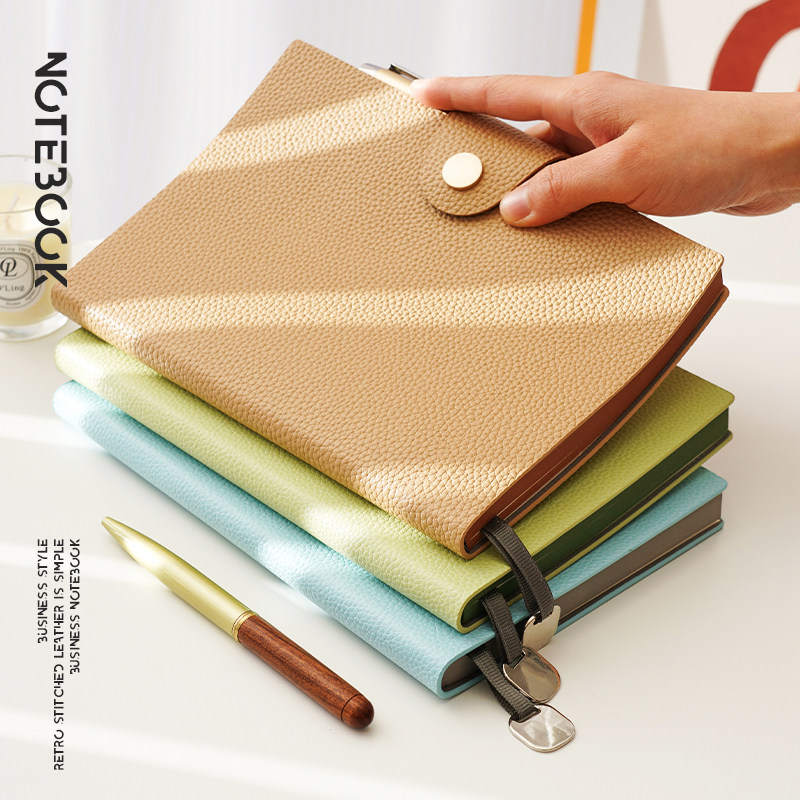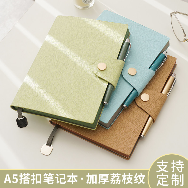 新款荔枝纹A5搭扣笔记本子本子加厚记事软皮商务简约学生会议记录本批发考研日记本软皮面工作记账可定制logo