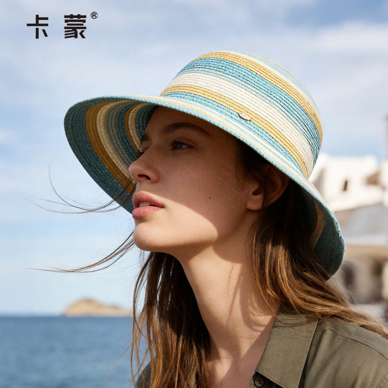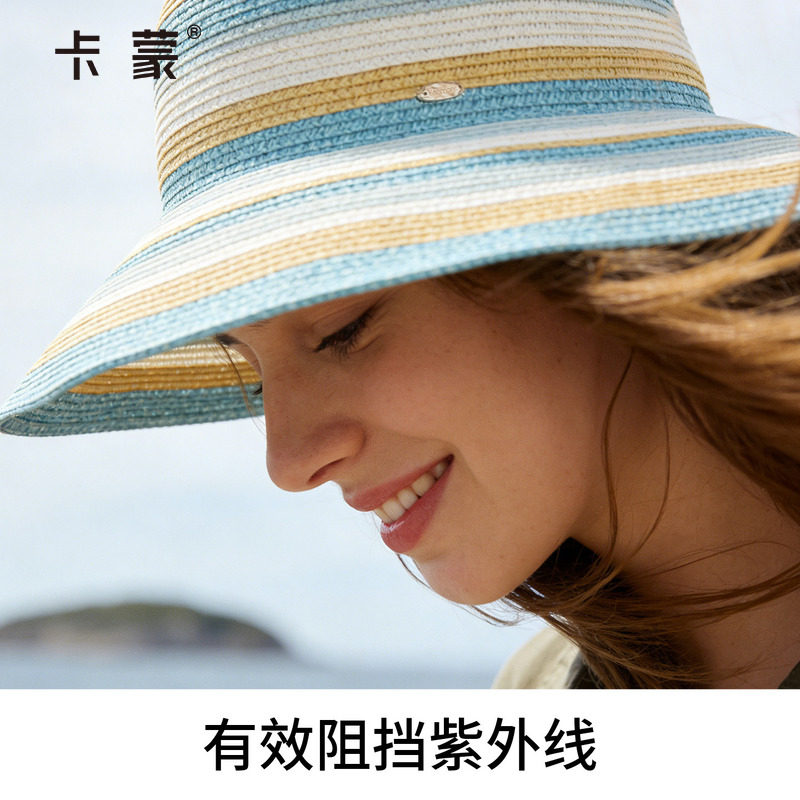 卡蒙帽子女款2026新款大帽檐遮脸防晒帽太阳帽沙滩条纹草帽遮阳帽