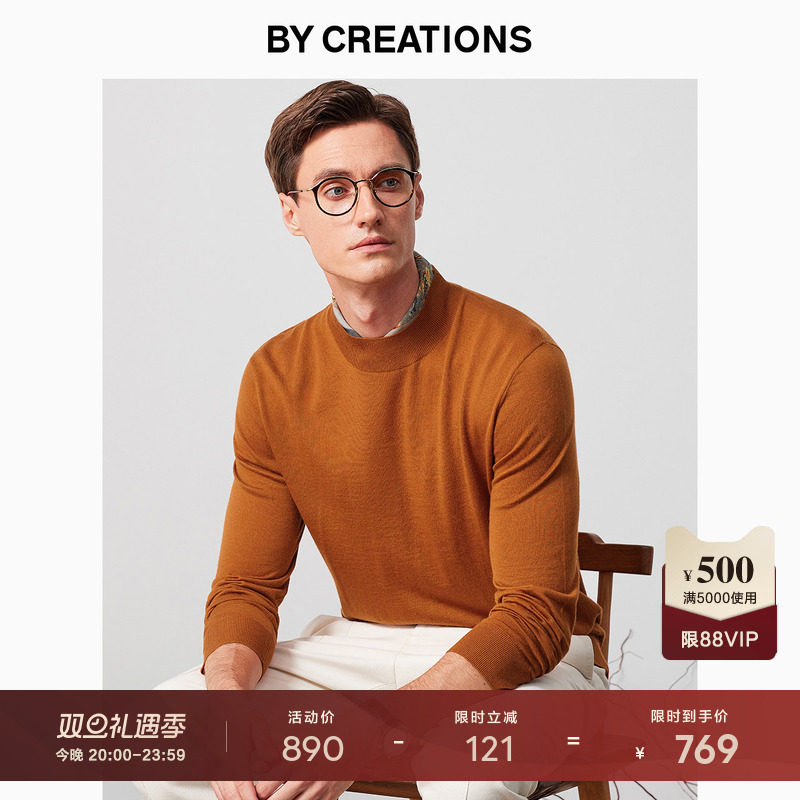 柏品纯羊绒半高领毛衣男士冬基础休闲亲肤保暖修身16针打底针织衫