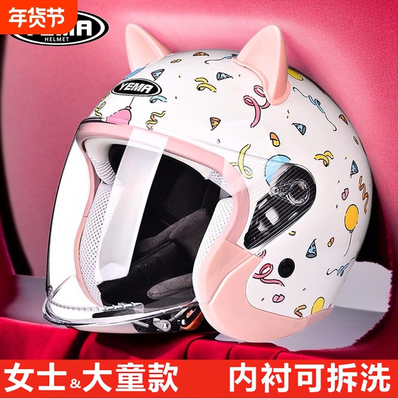 野马头盔电动车女士可爱冬季保暖摩托车半盔四分之三电瓶车安全帽
