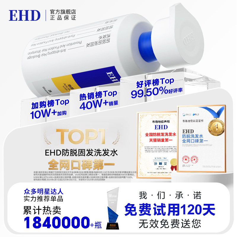 EHD防脱洗发水固发控油蓬松去屑防断洗发露侧柏叶官方正品旗舰店