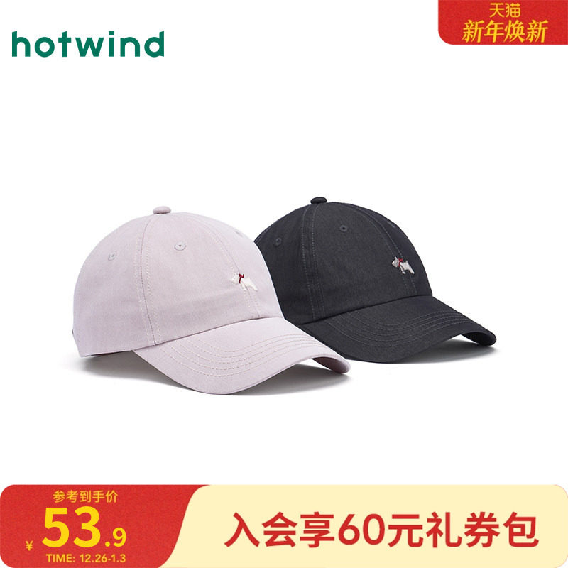 热风2025年秋季新款女士可爱小狗绣花软顶棒球帽透气吸汗