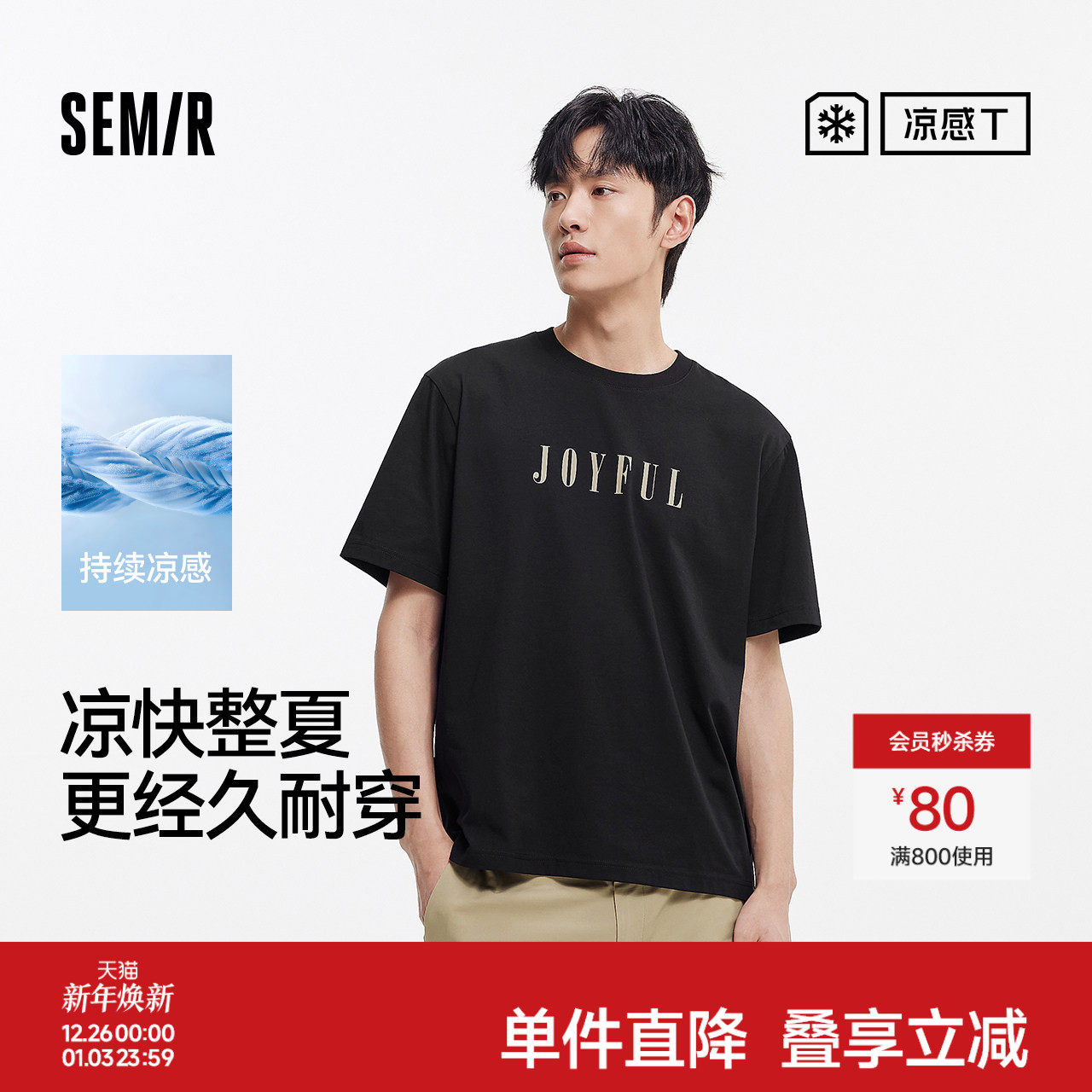 [商场同款]森马短袖T恤男针织内搭2025夏季新款印花圆领上衣百搭