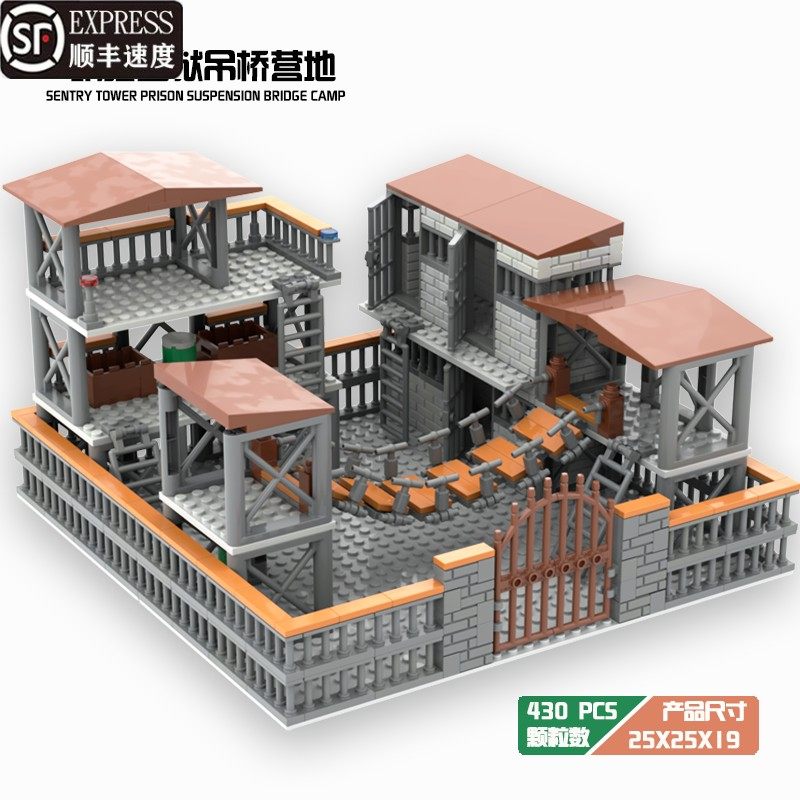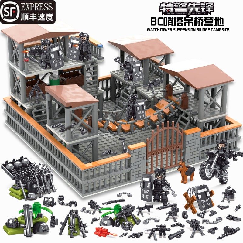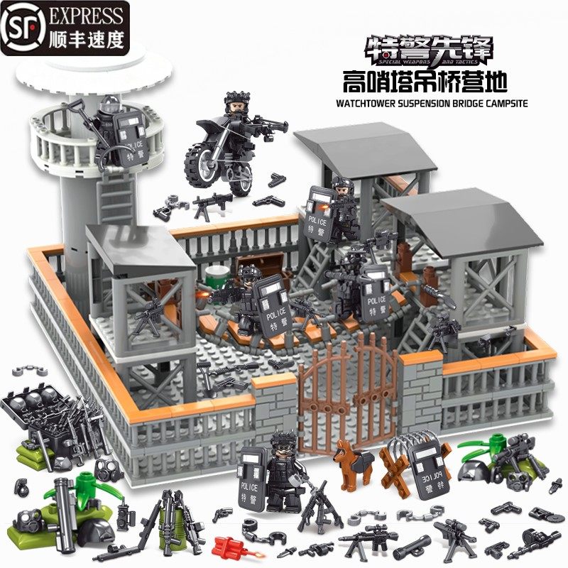 兼容乐高积木玩具军事人仔特种兵特警小人偶哨塔牢房堡垒男孩拼装