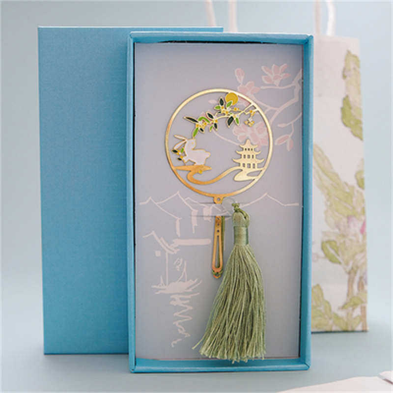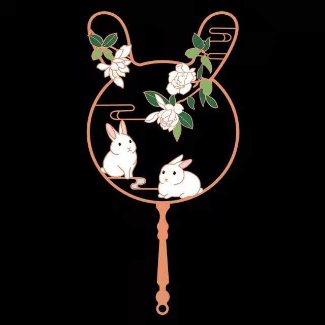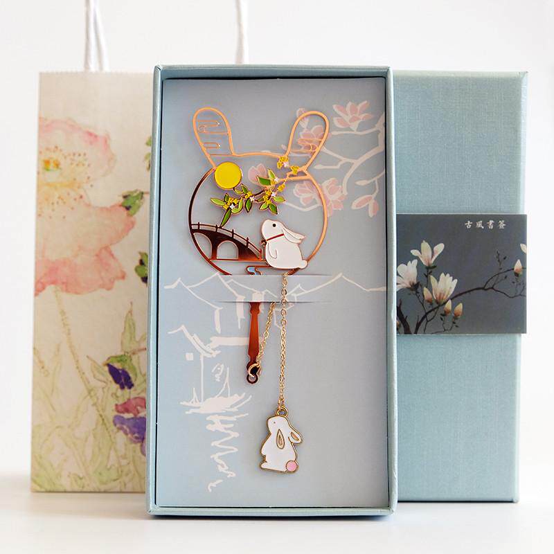 桂花兔中秋节团扇书签定制刻字礼品送学生老师企业礼品加笔套盒
